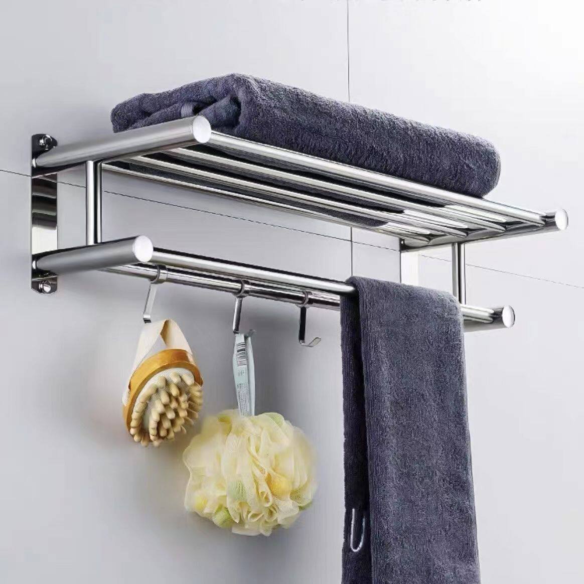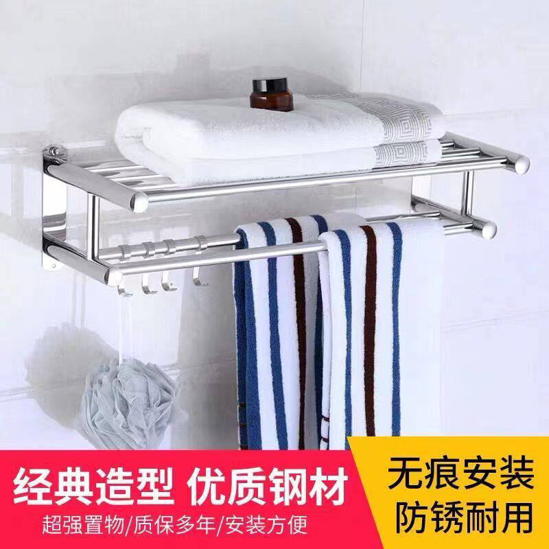 卫生间置物架浴室免打孔浴巾架墙上壁挂式毛巾架不锈钢毛毯衣服架