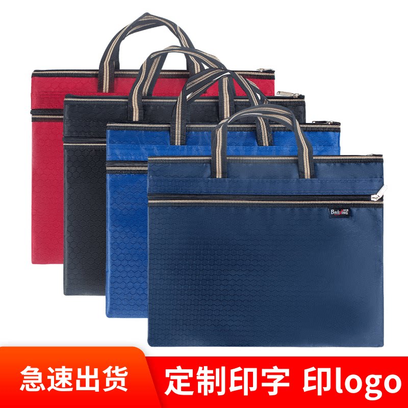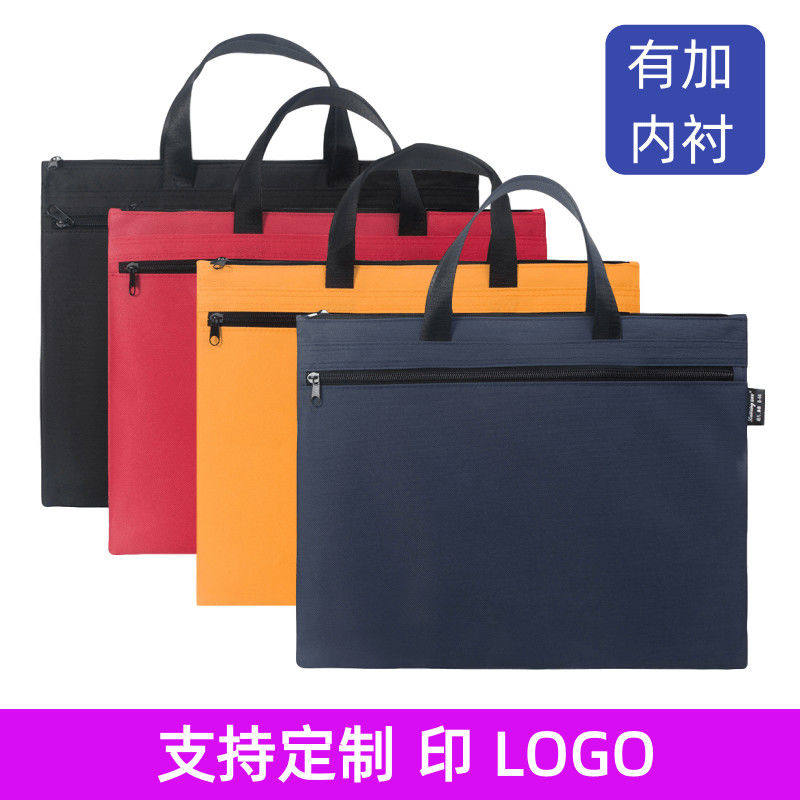 手提文件袋帆布办公拉链袋大容量男女多层A4资料袋公文包会议定制