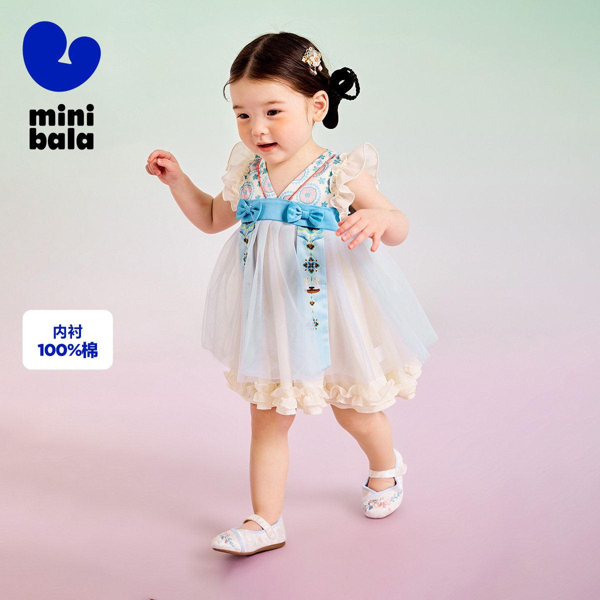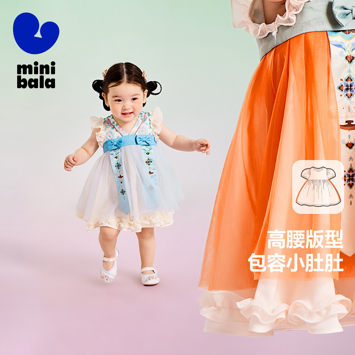 迷你巴拉巴拉女童汉服连衣裙宝宝周岁演出国风裙子新中式夏公主裙