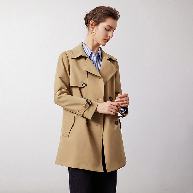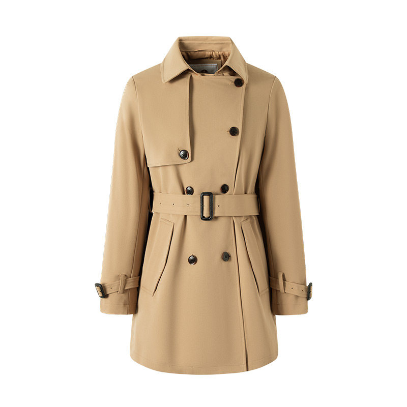 半片花瓣「晚宴」小羊皮拼接飞片造型腰带大衣 长款翻领风衣外套