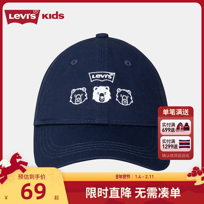 Levi's李维斯儿童牛仔鸭舌帽帽子男童运动帽女生遮阳帽棒球帽子潮