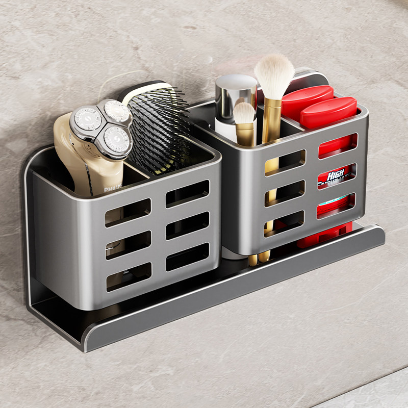 卫生间牙刷置物架电动吹风机支架家庭洗漱台壁挂式漱口杯牙具架子