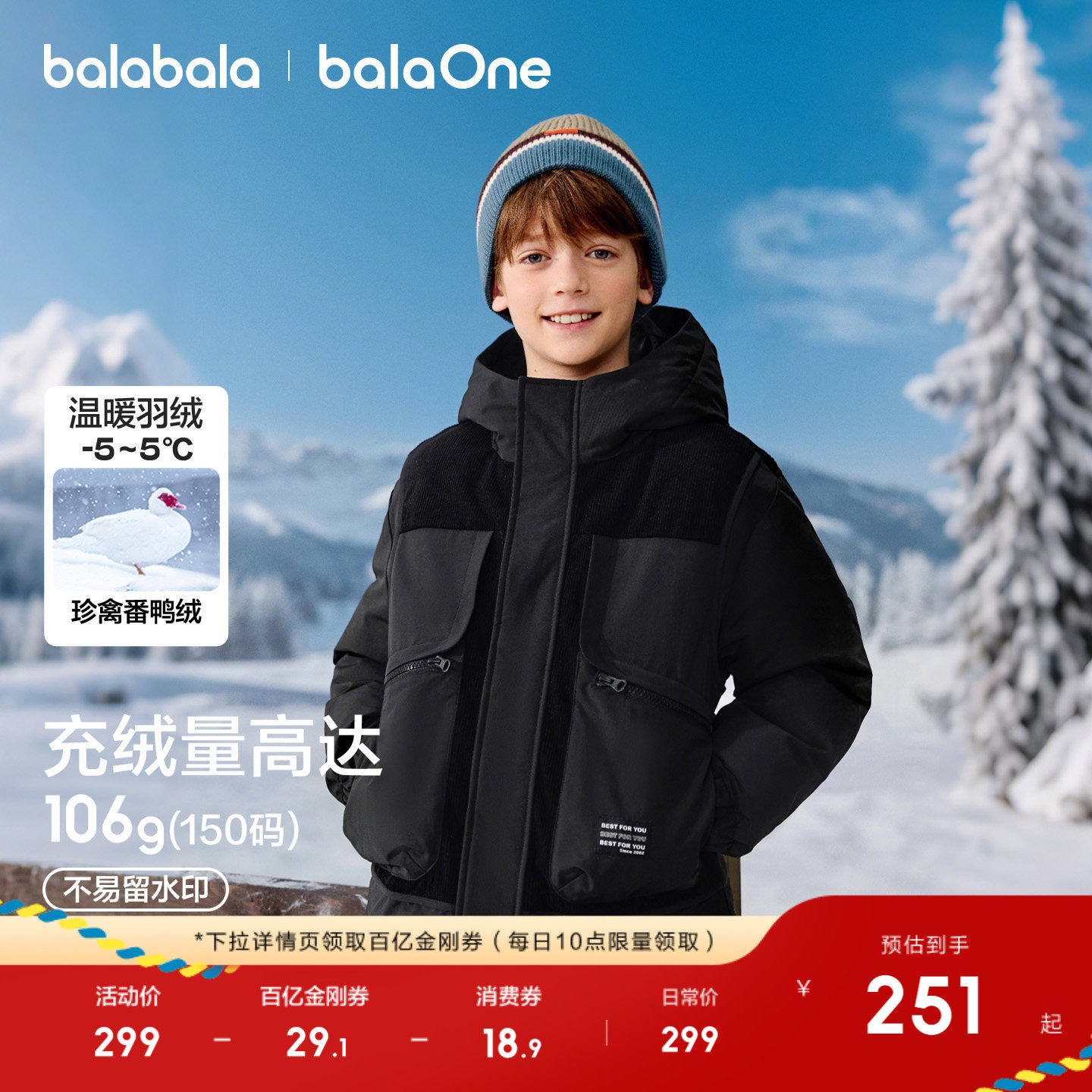 巴拉巴拉童装男童羽绒服2025新款加厚保暖外套防泼水冬假两件儿童