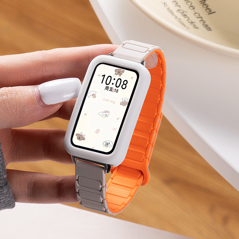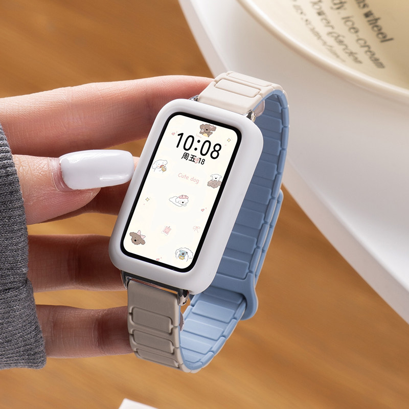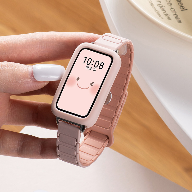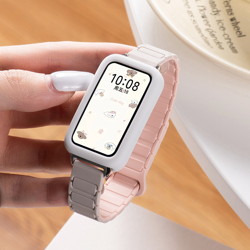 适用华为手环10nfc表带磁吸版新款男女智能运动硅胶腕带10/8/9夏天替换手表带高级感保护壳套装白色陶瓷粉色