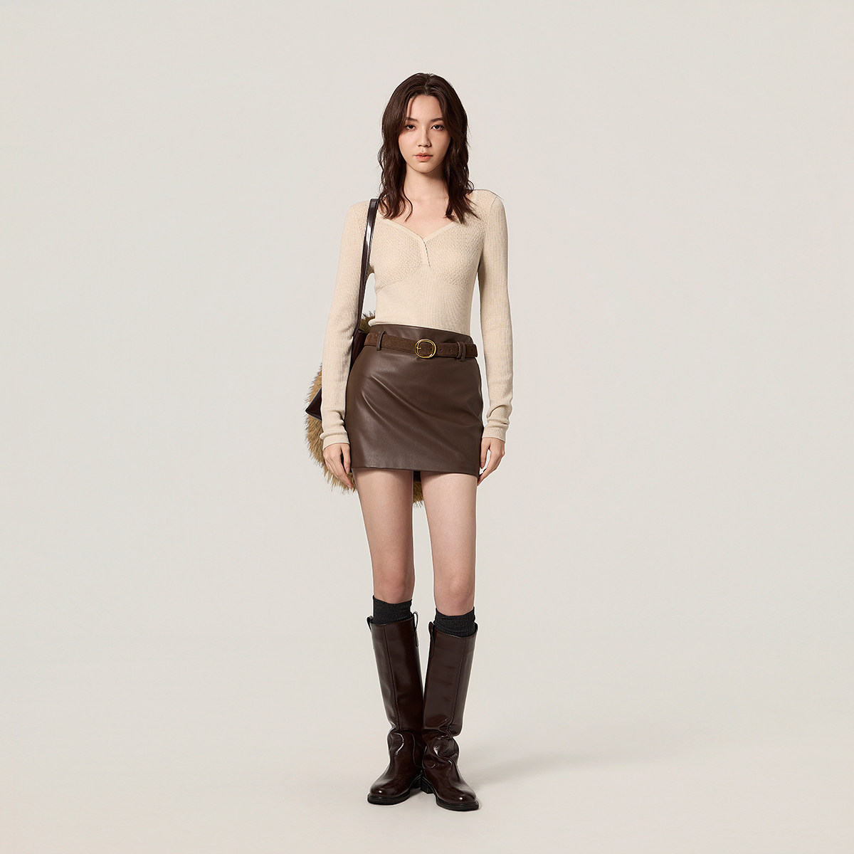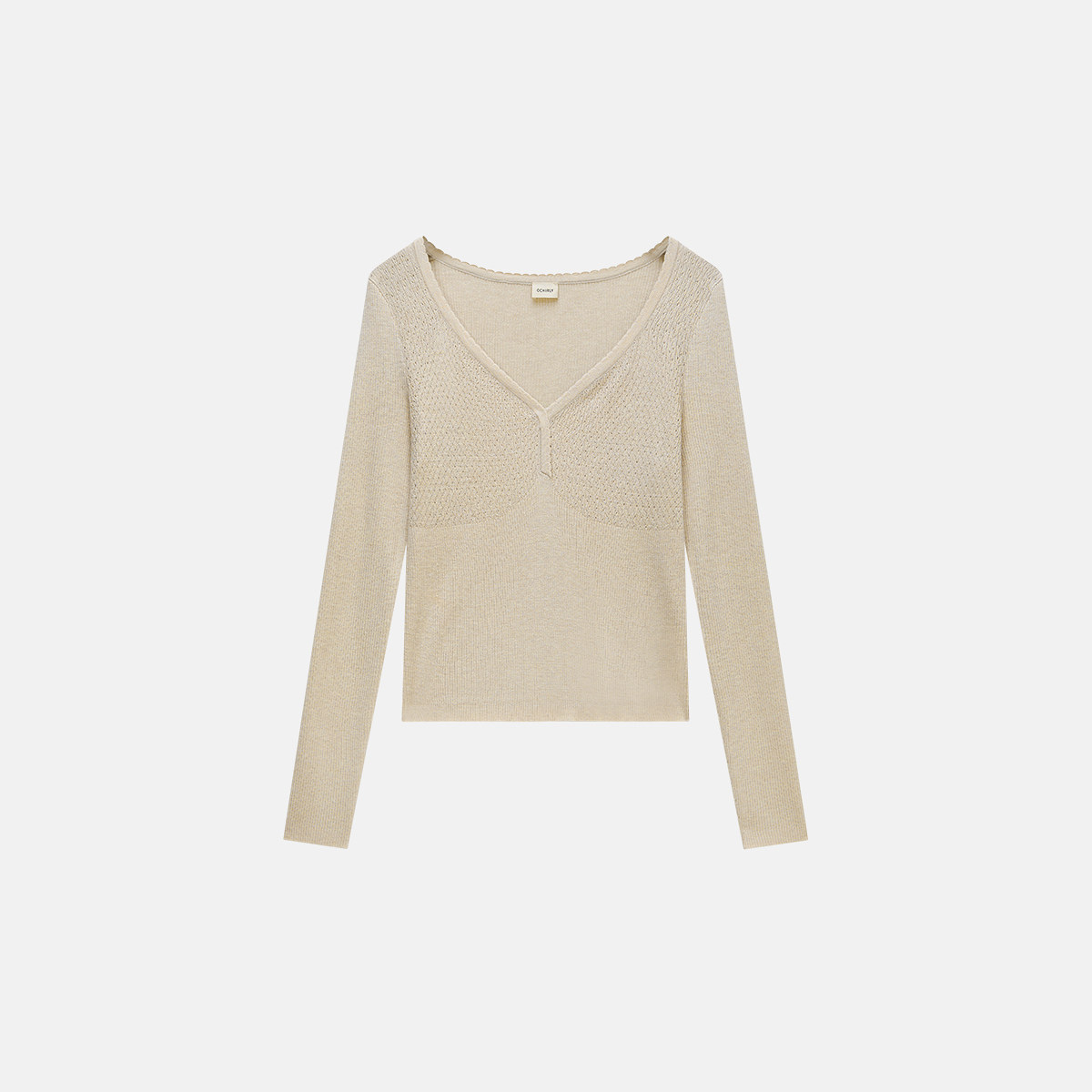 OCHIRLY欧时力 波浪边V领针织毛衣提花修身女士高级流行冬