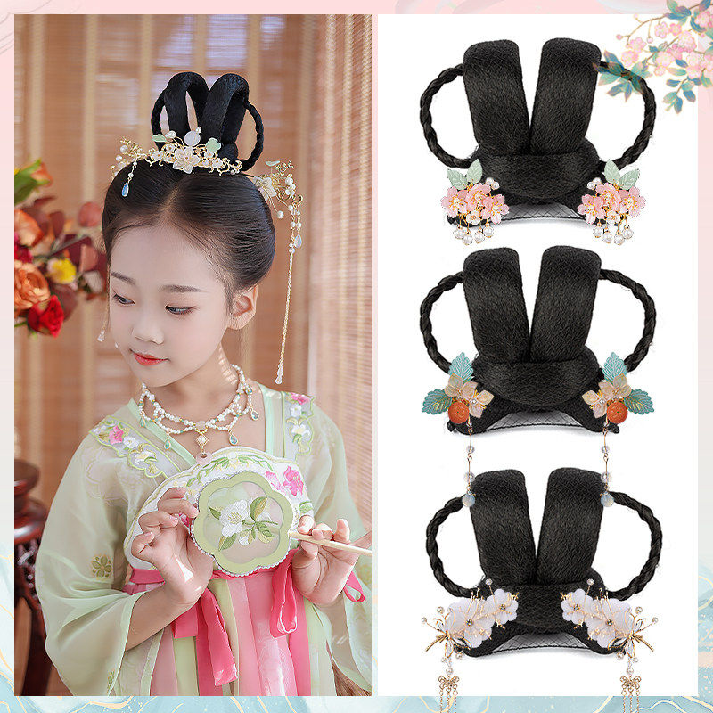 儿童汉服假发蝴蝶结发髻造型古装假发包女童汉服假发头饰假发古风