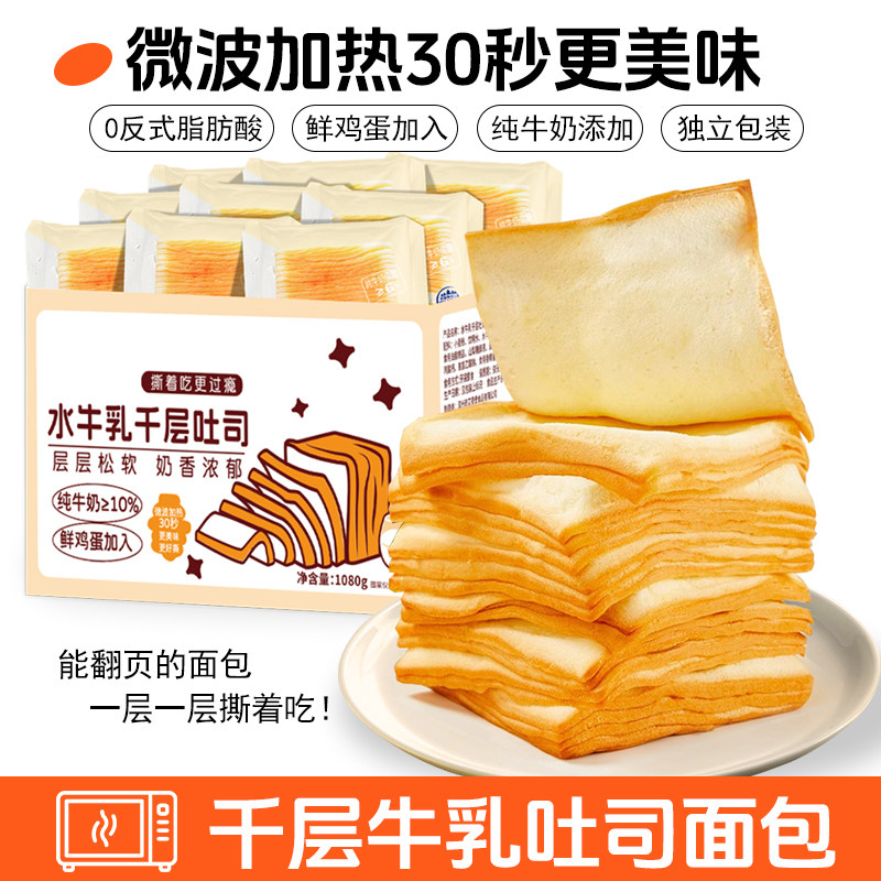 水牛乳千层魔方吐司手撕早餐软面包整箱20包2斤装点心小零食好吃