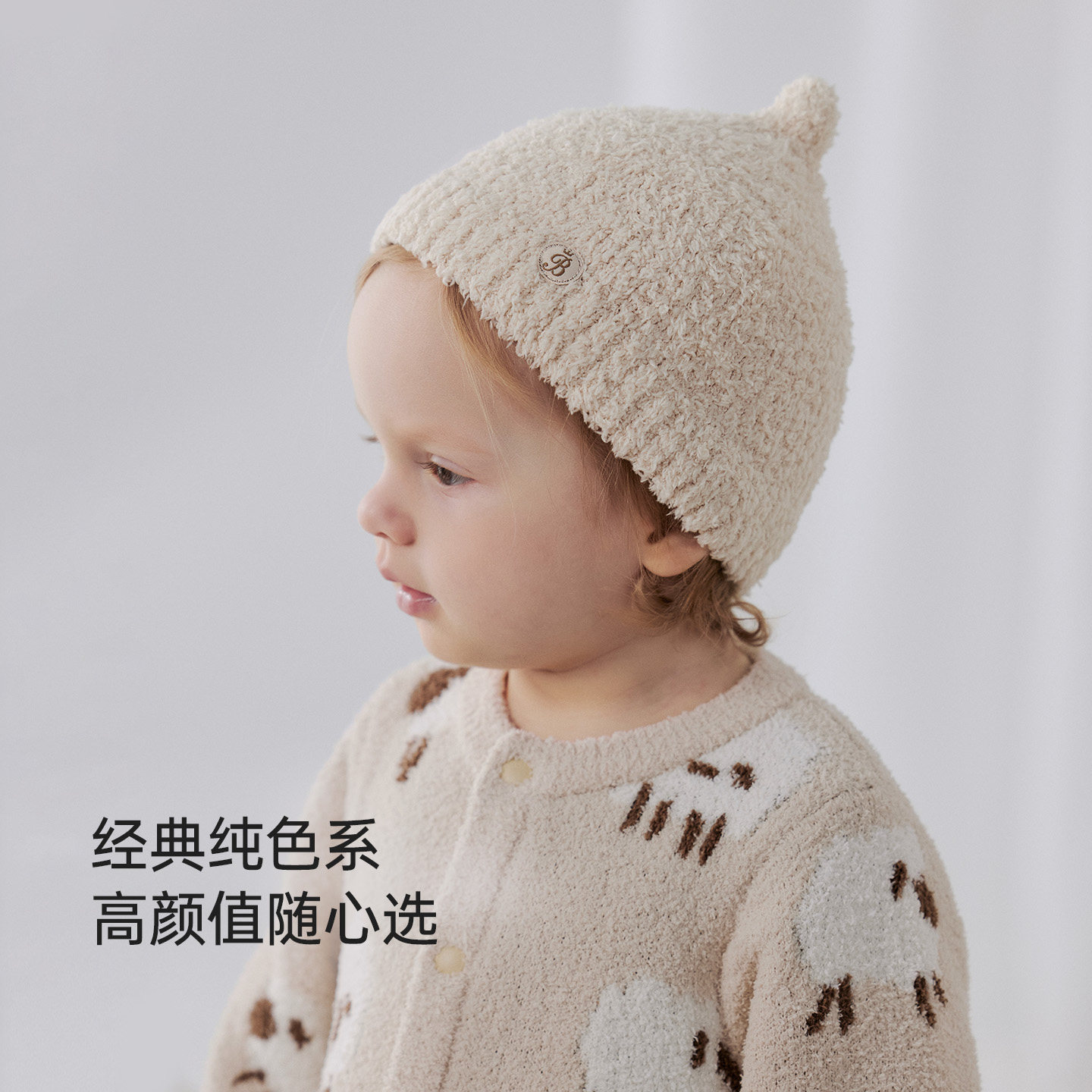 babylove婴儿半边绒保暖帽子秋冬季包头胎帽宝宝新年帽时尚套头帽