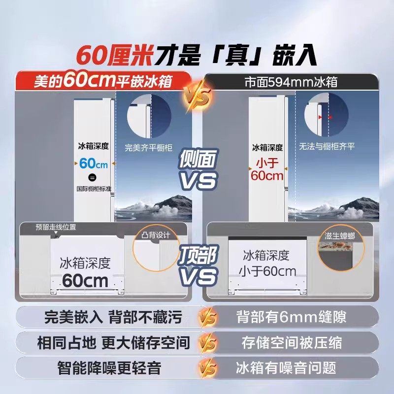 双系统|美的M60小机皇520超薄零嵌入式冰箱家用法式多门四门双开
