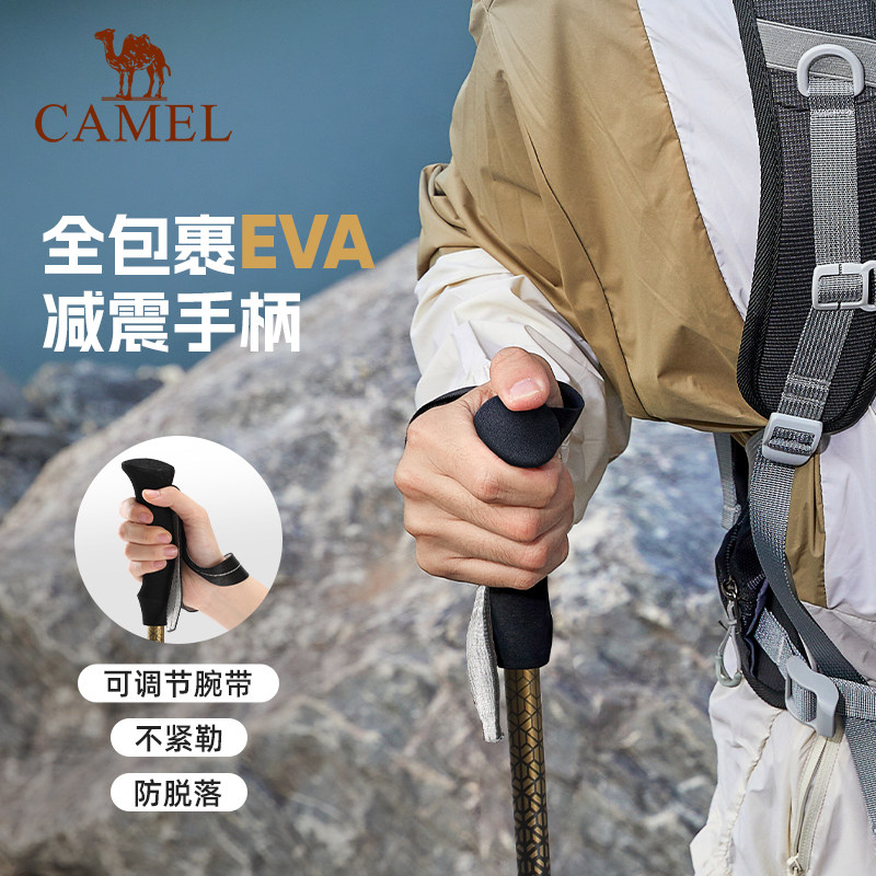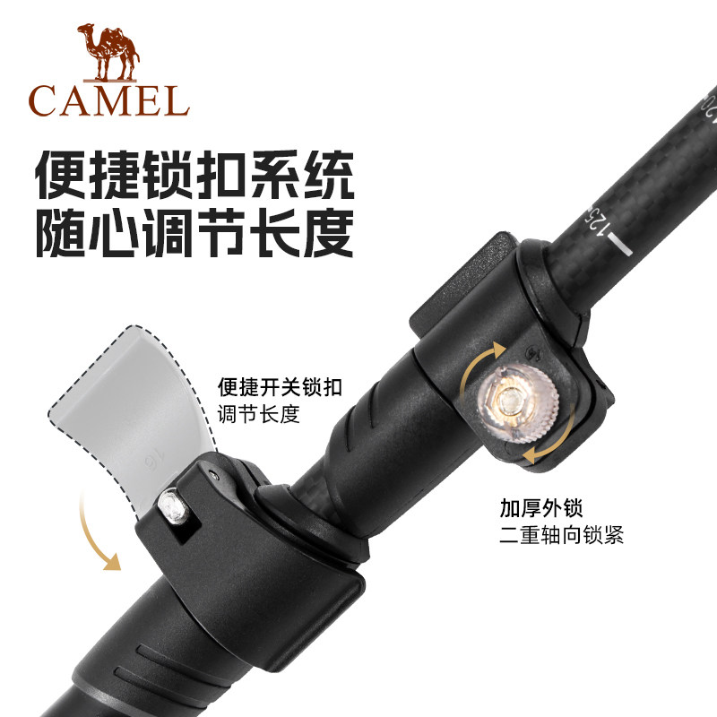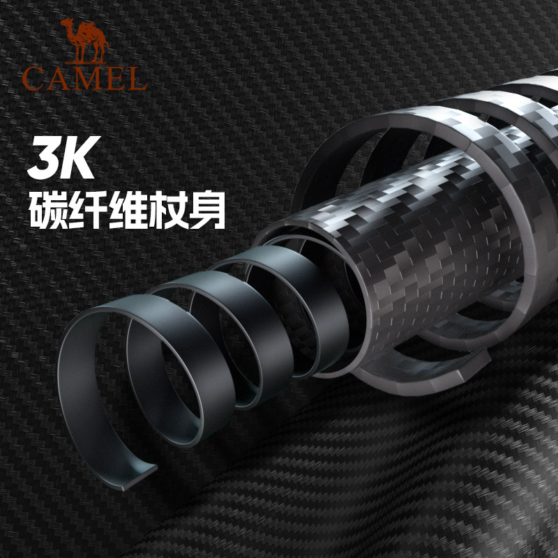 骆驼登山杖碳纤维徒步手杖折叠户外爬山登山碳素轻便伸轻量款拐杖