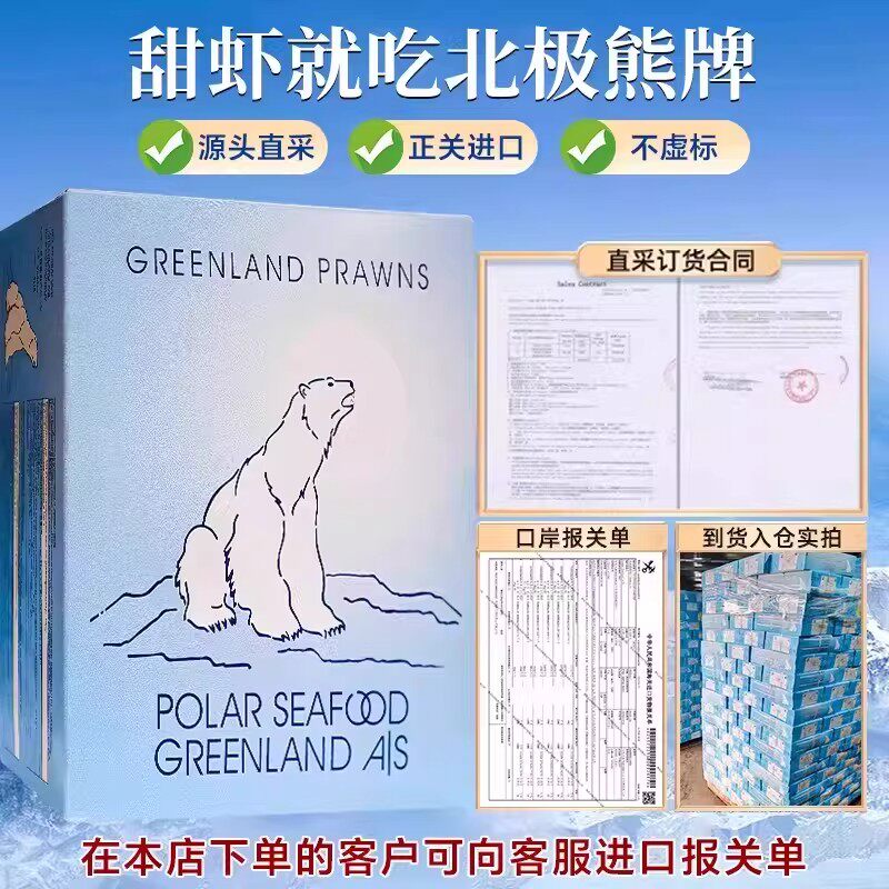 北极甜虾北极熊北极虾刺身头籽生鲜特大号冰虾新鲜冷冻即食旗舰店