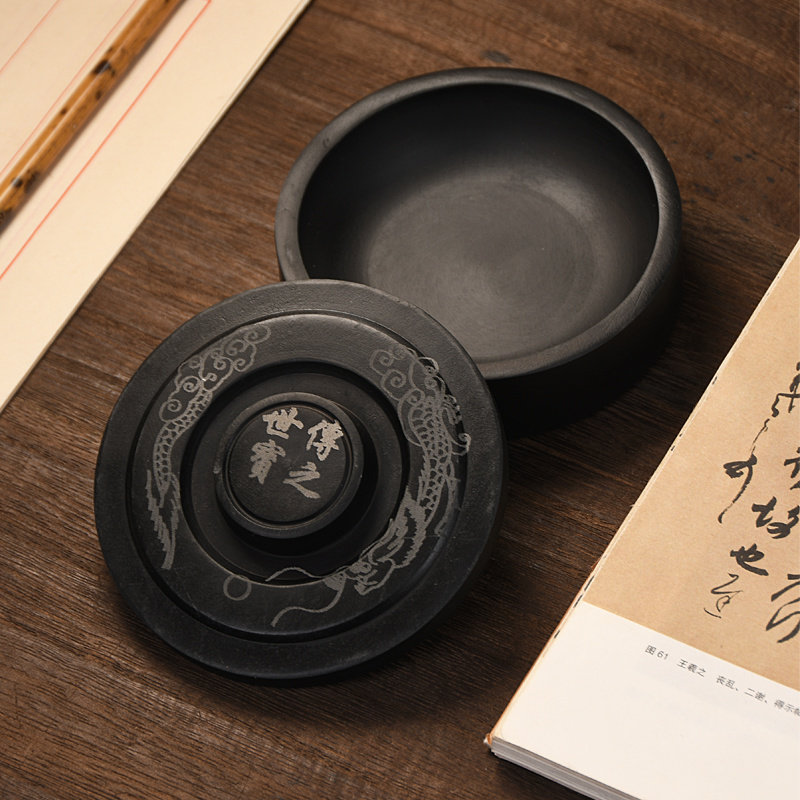 天然原石火锅砚台带盖端砚罗纹砚成人初学者文房四宝书法国画毛笔学生用墨碟多功能墨盒墨池墨汁4寸学生砚台