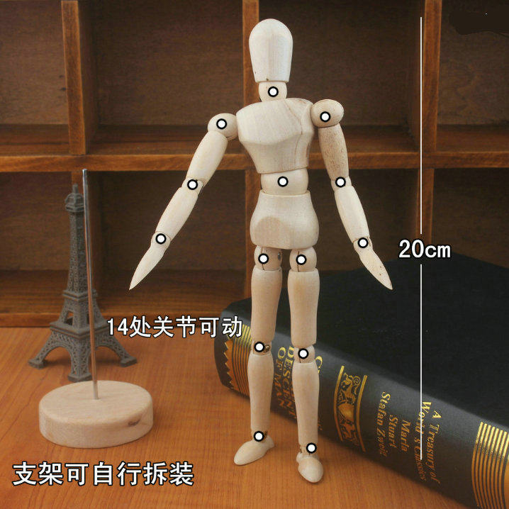 8寸约20CM木头人 关节木偶人 木人偶 漫画/素描用品 静态摆设模型