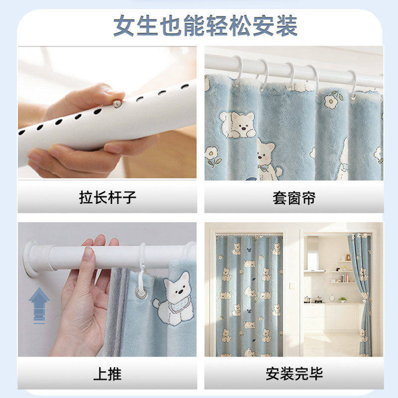 ins法兰绒窗帘儿童房学生宿舍防寒保暖帘客厅隔断卧室门帘免打孔