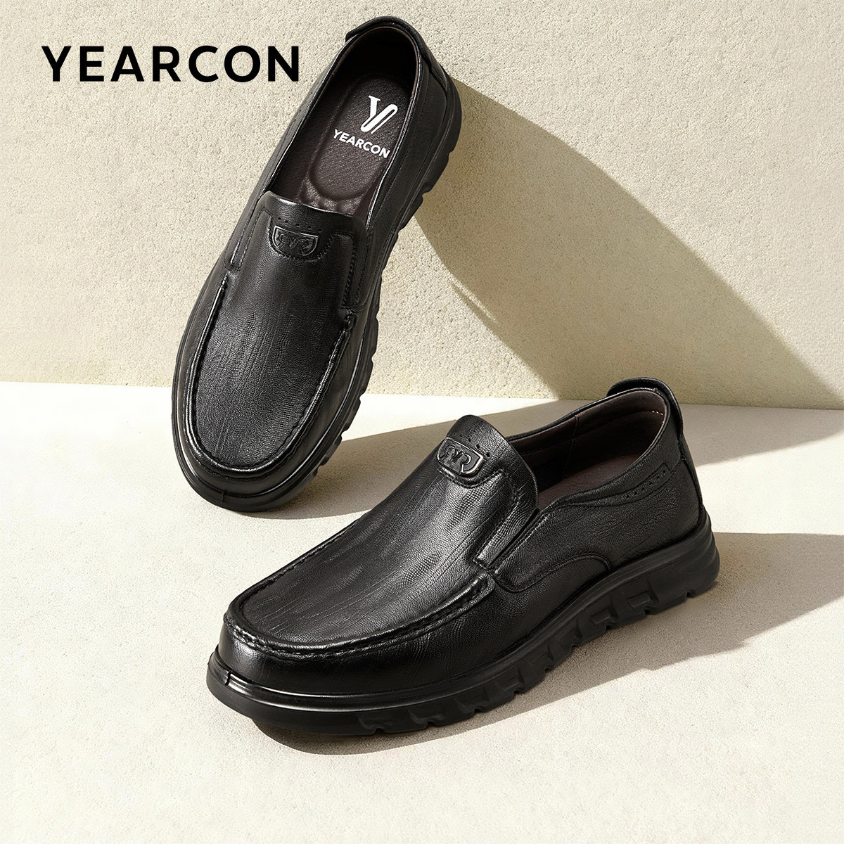 意尔康男鞋2026新款春季休闲皮鞋男士商务软底一脚蹬中年爸爸鞋