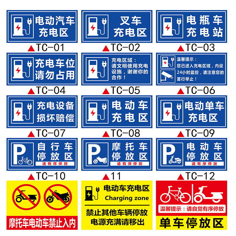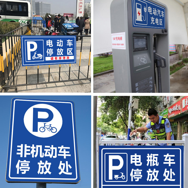 车辆停放处提示牌停车场自行车电瓶车摩托车停放处标识电动汽车充电区充电桩指示厂区非机动车货车文明停车牌