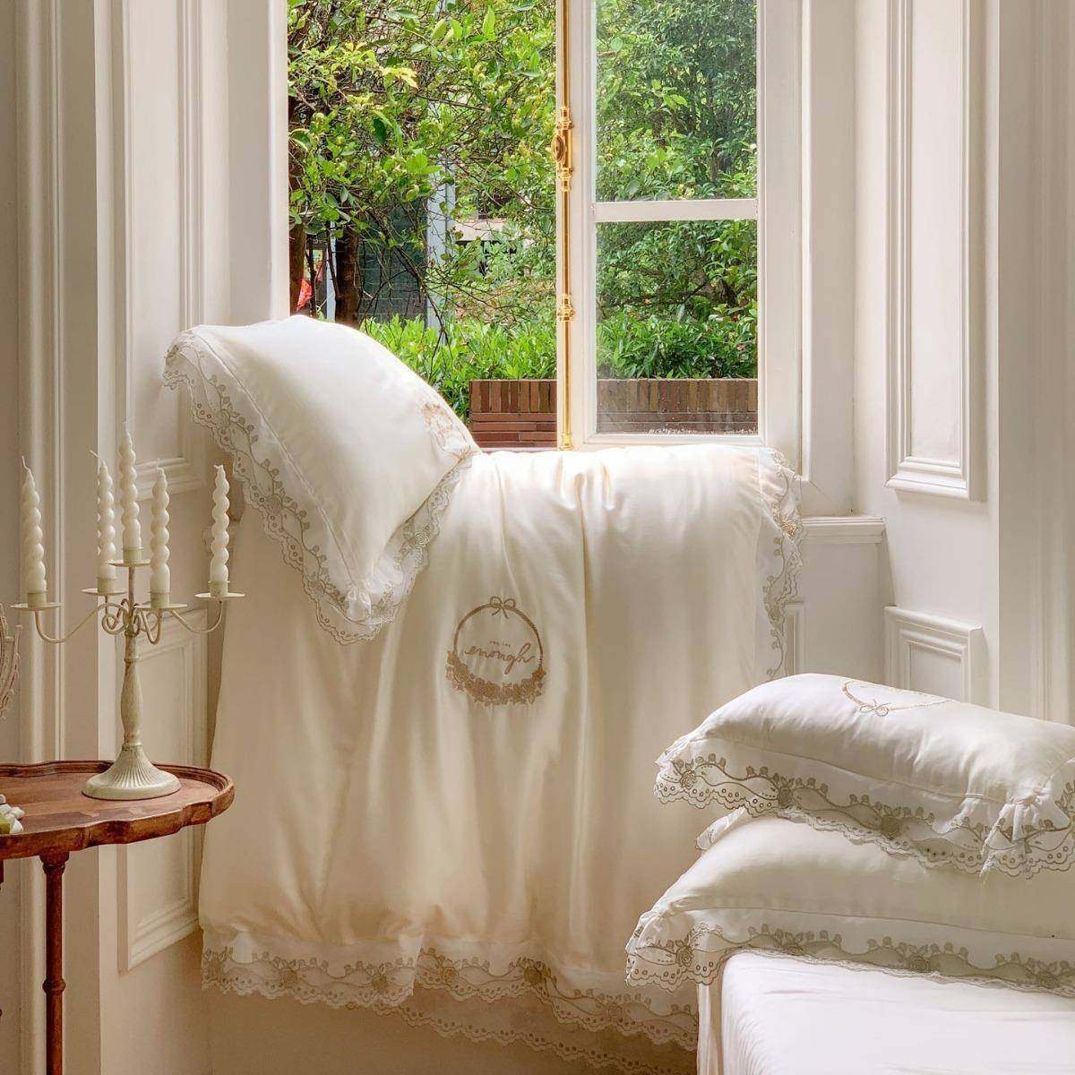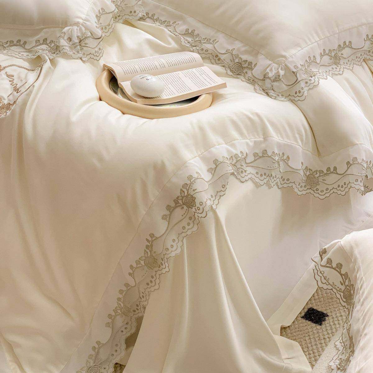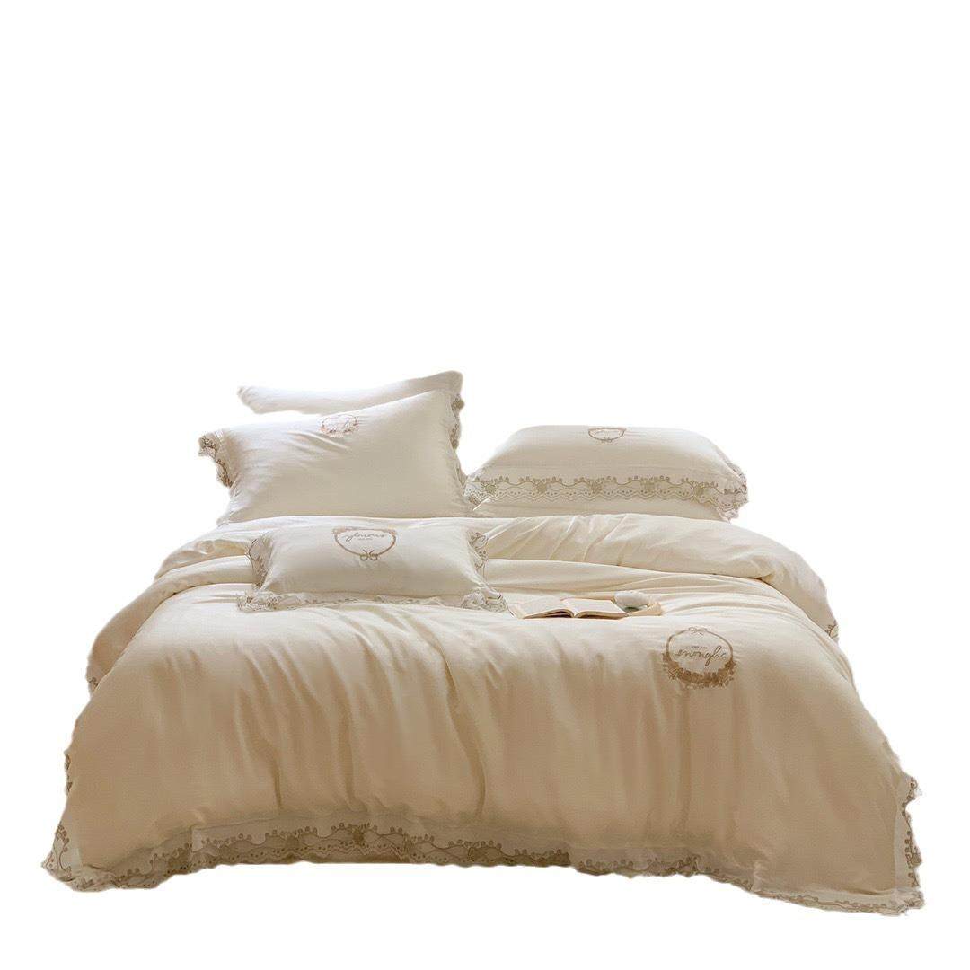 春夏季法式公主风80支兰精天丝四件套刺绣花边被罩凉感床品