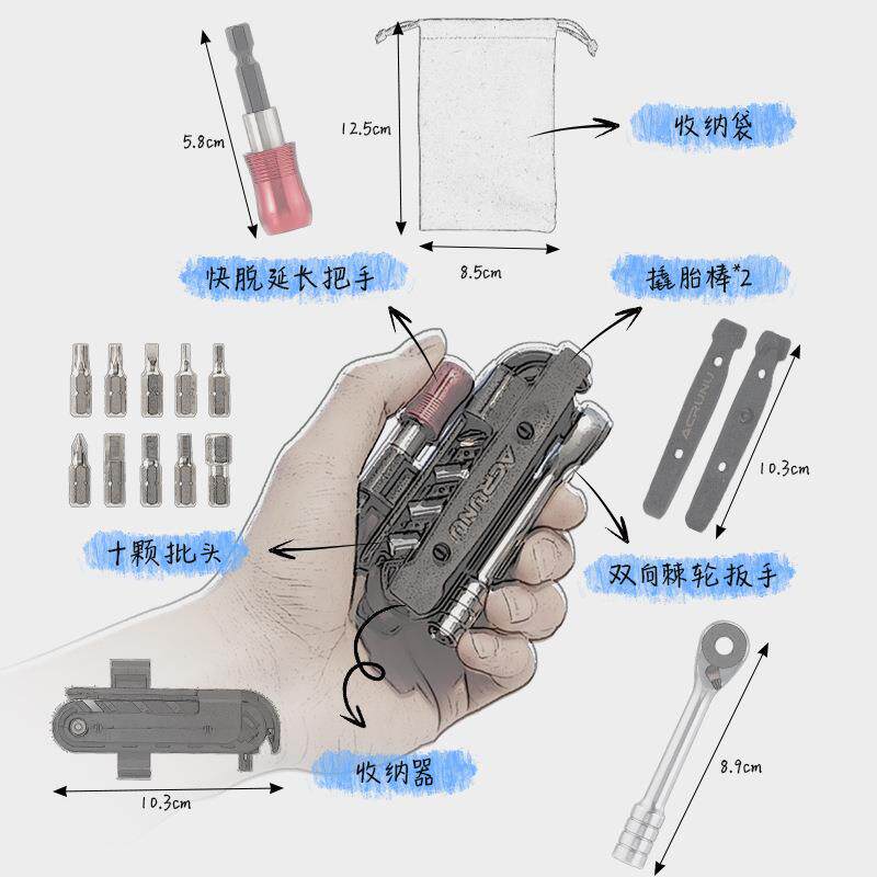 ACRUNU自行车修车工具套装单车多功能棘轮扳手公路车便携补胎工具