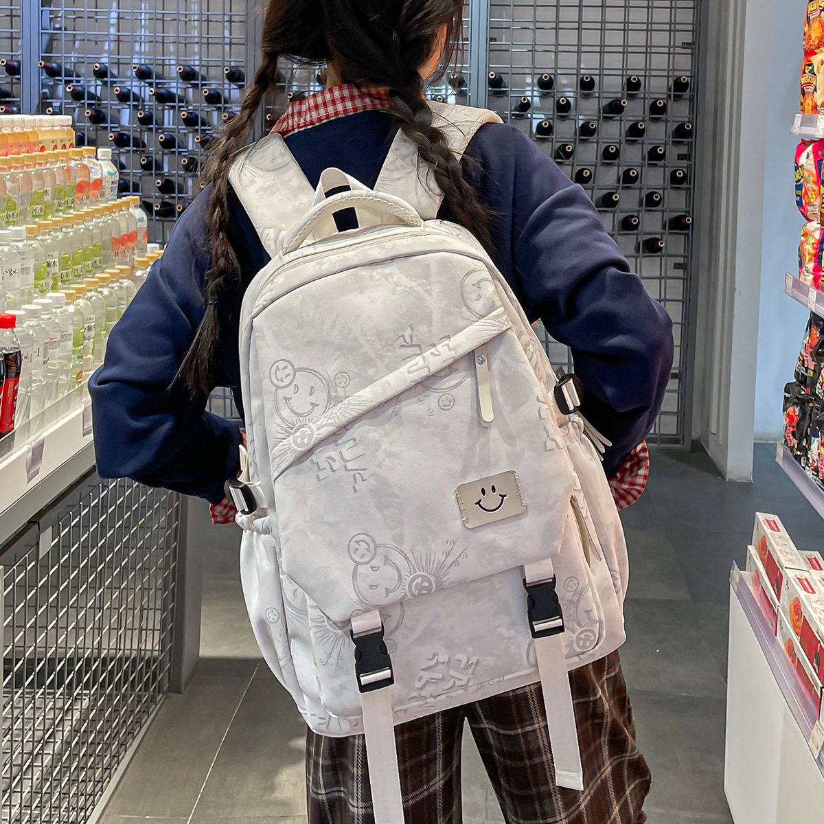 ins港风书包女孩韩版日系高中大学生背包初中生百搭大容量双肩包
