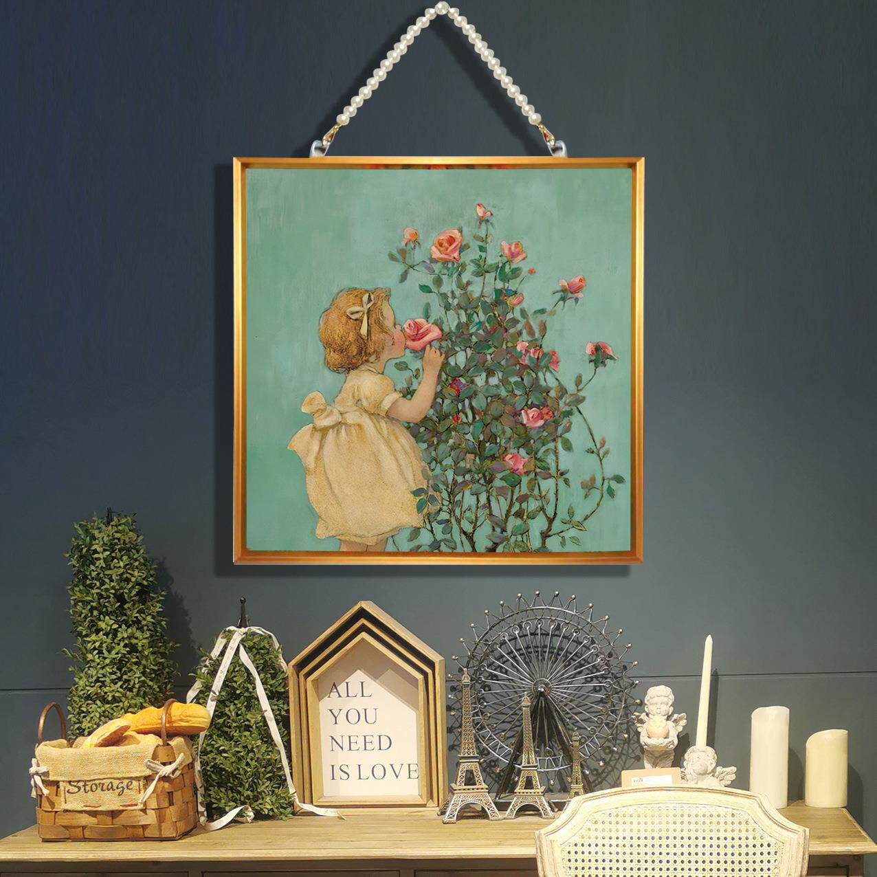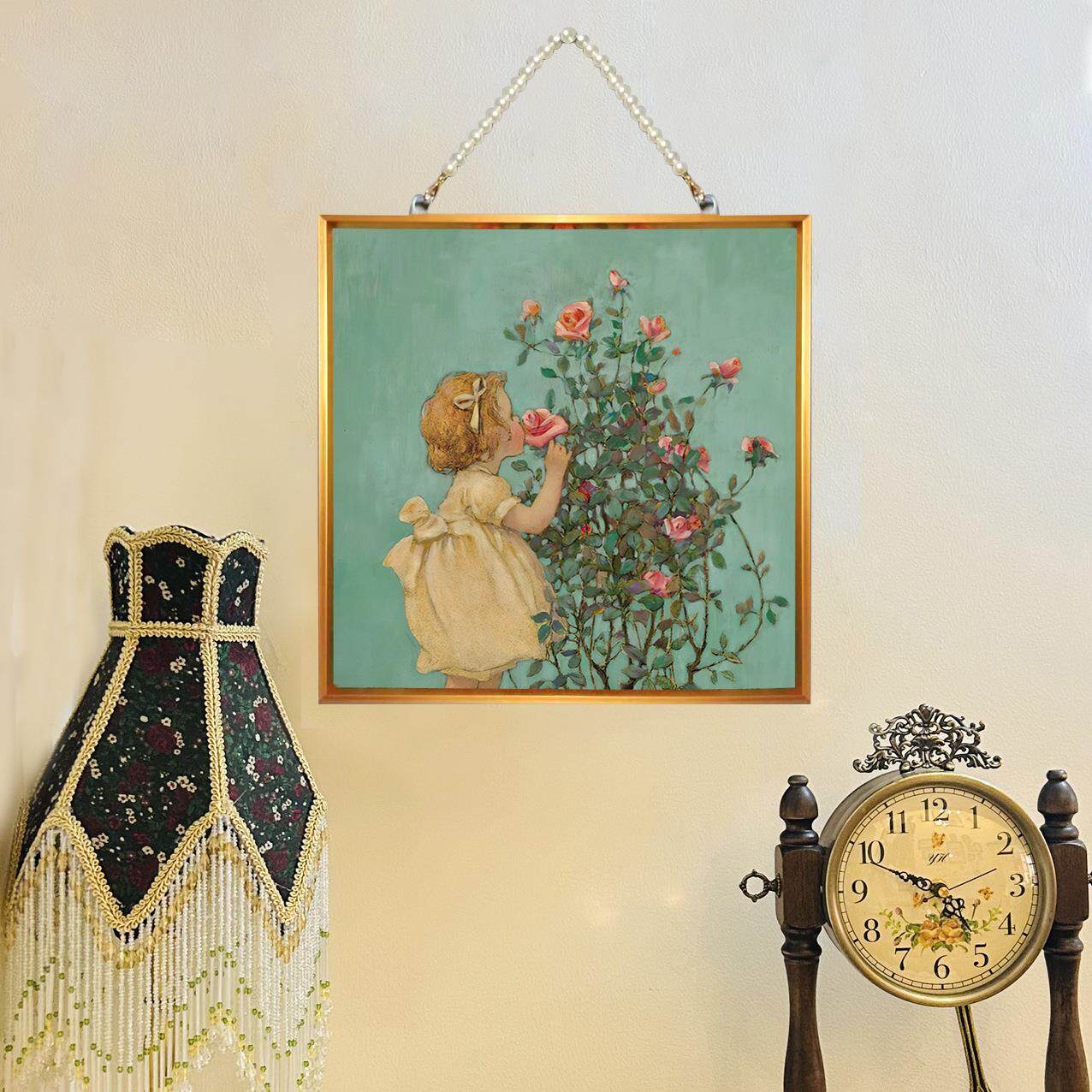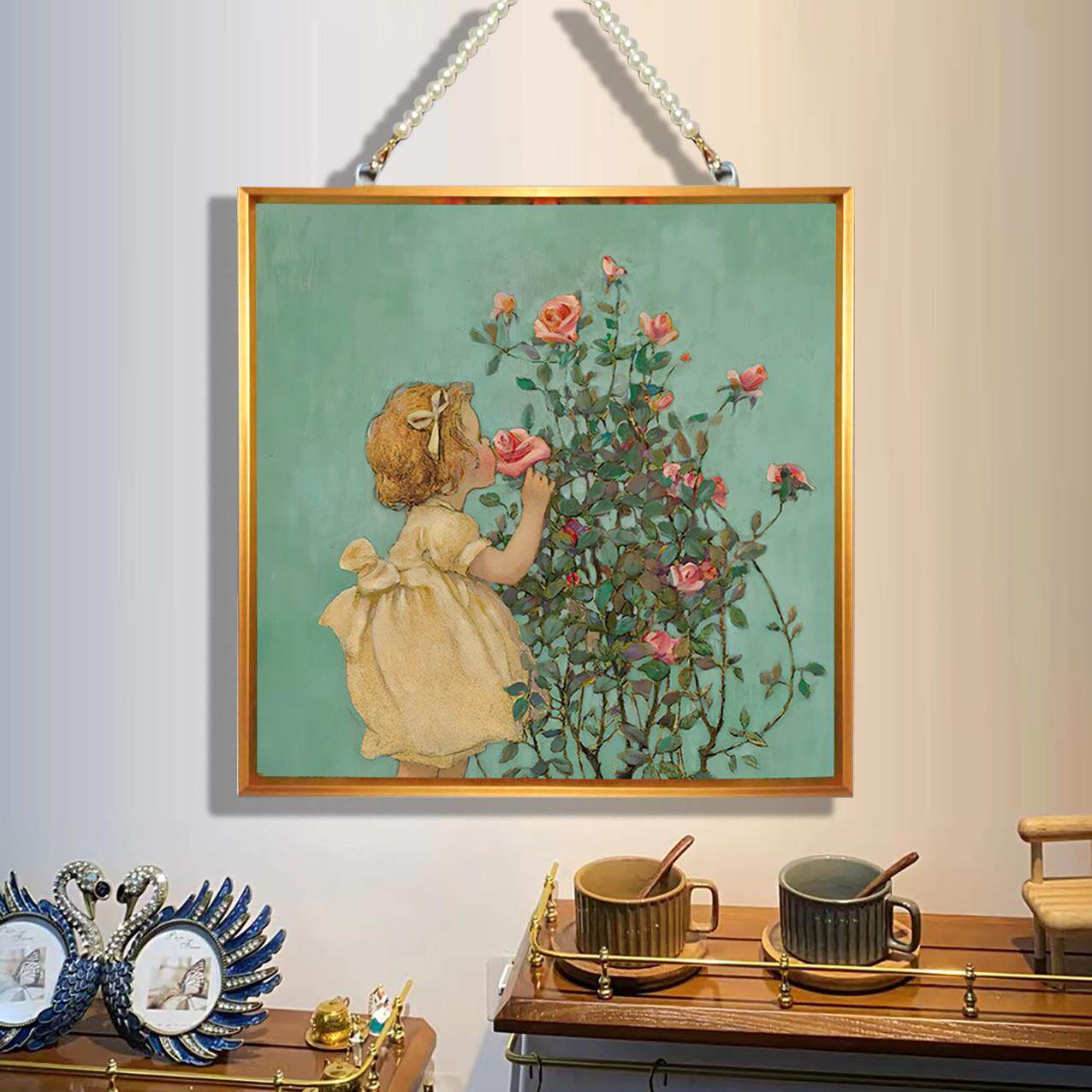 尺寸30*30带珠链铝合金装饰画现代唯美客厅餐厅玄关创意墙饰花卉