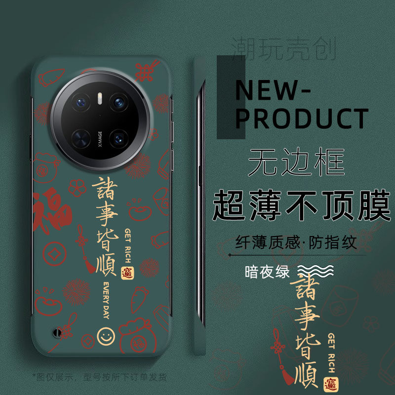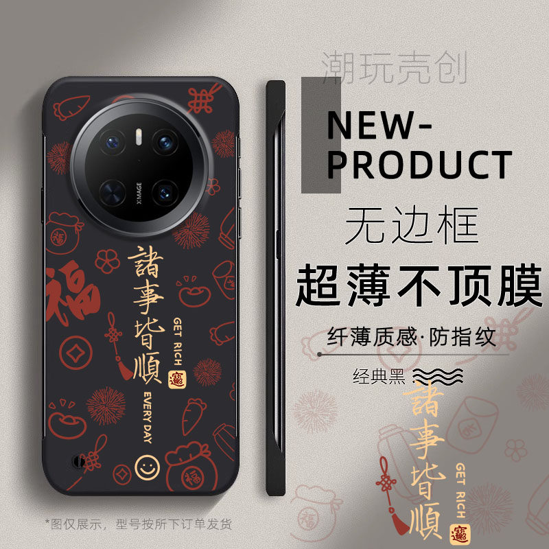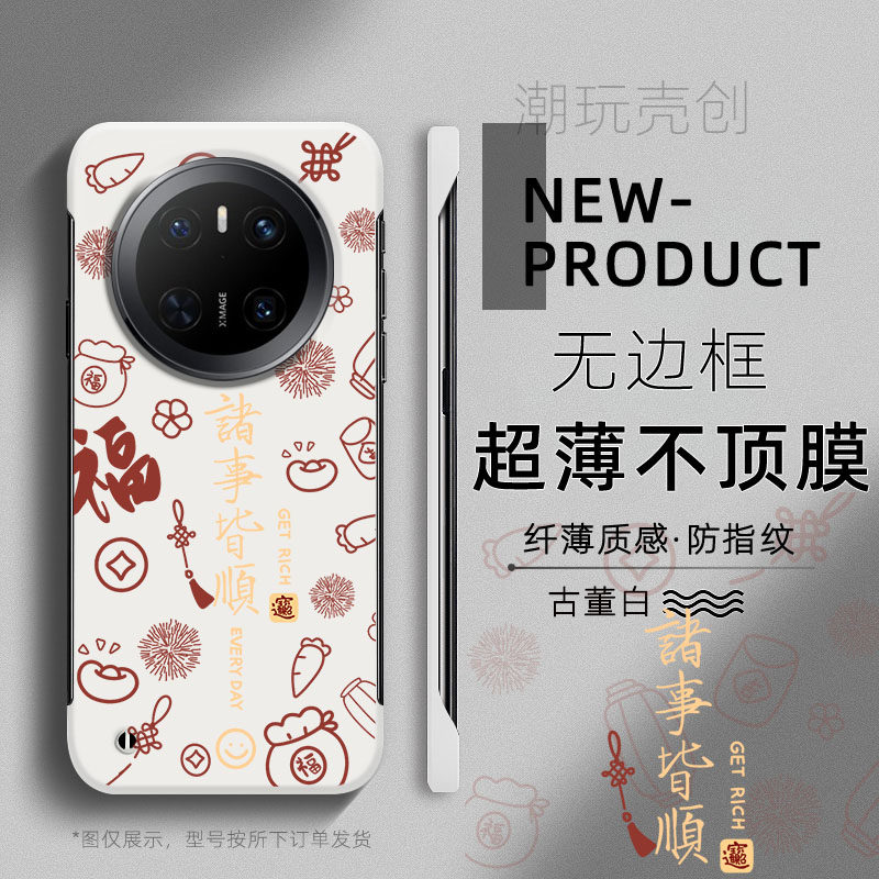 适用华为MATE80PRO手机壳70诸事皆顺过年喜庆60PRO+超薄无边框不顶膜MATE50RS新款MATE40RS半包30pro防摔硬壳