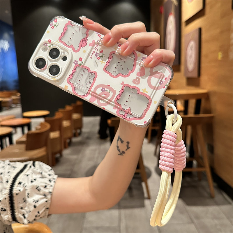 可放小卡适用苹果17promax手机壳iphone16趣味14小猫咪13新款12卡包11卡套xs带挂绳xr女生8plus手腕绳7硅胶