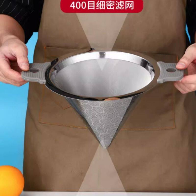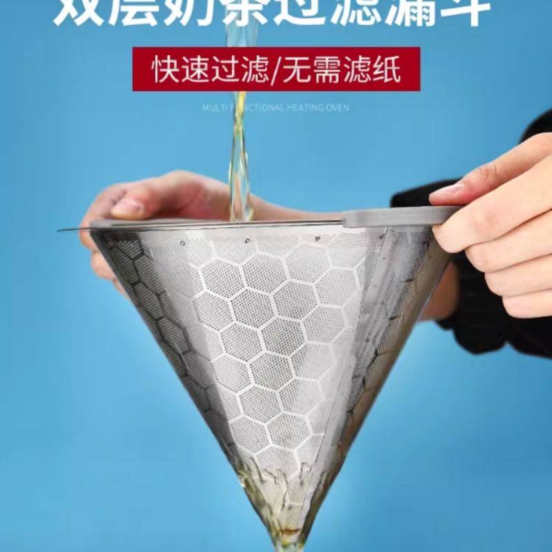 304不锈钢双耳茶桶茶叶超细过滤器奶茶店专用大号锥形茶隔网漏斗