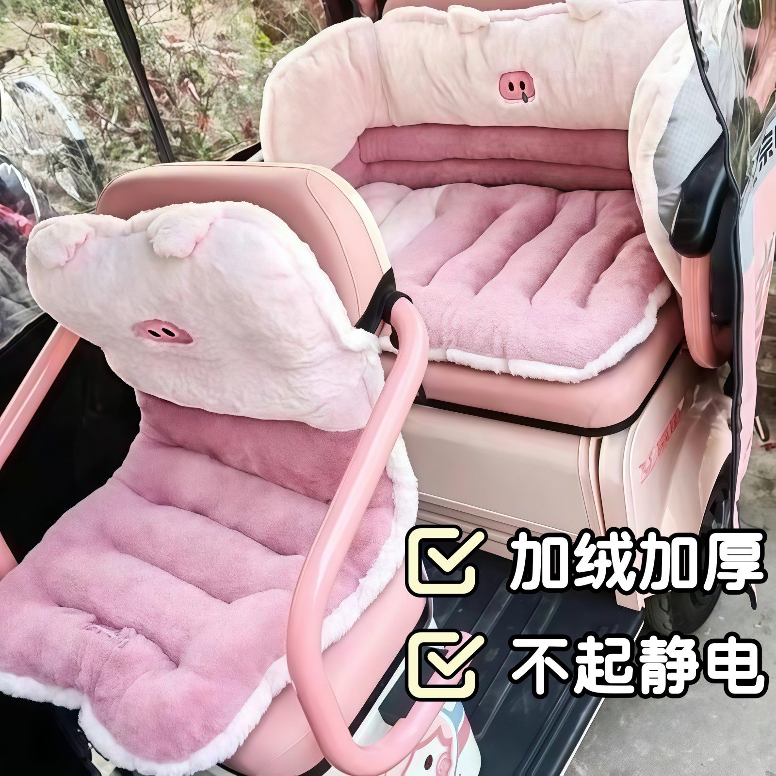 电动三轮车后排围挡坐垫靠背一体毛绒屁股垫座垫套罩电单车鞍座