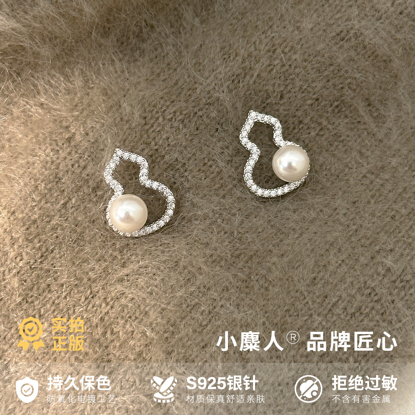 小麋人「福禄萦耳」925纯银贝珠葫芦银针耳钉女耳环耳饰小众爆款