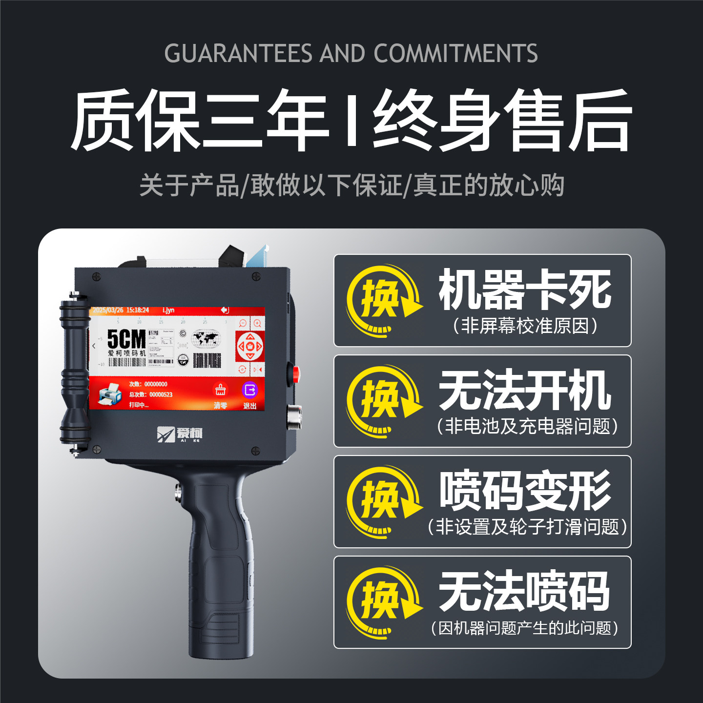爱柯大字体50mm手持喷码机智能喷墨打码机打纸箱木材钢板工业商用