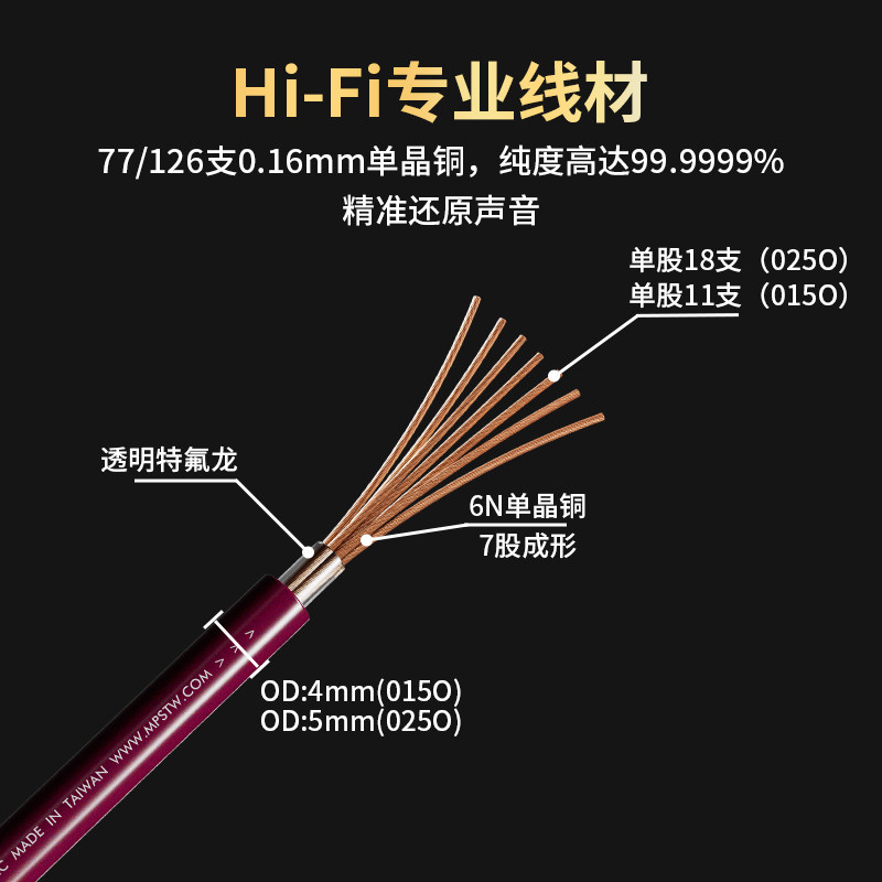 线材MPS发烧音响特氟龙单芯线OCC单晶铜箱内线机内线分频器箱内线