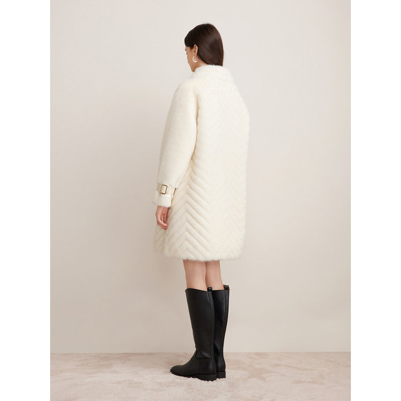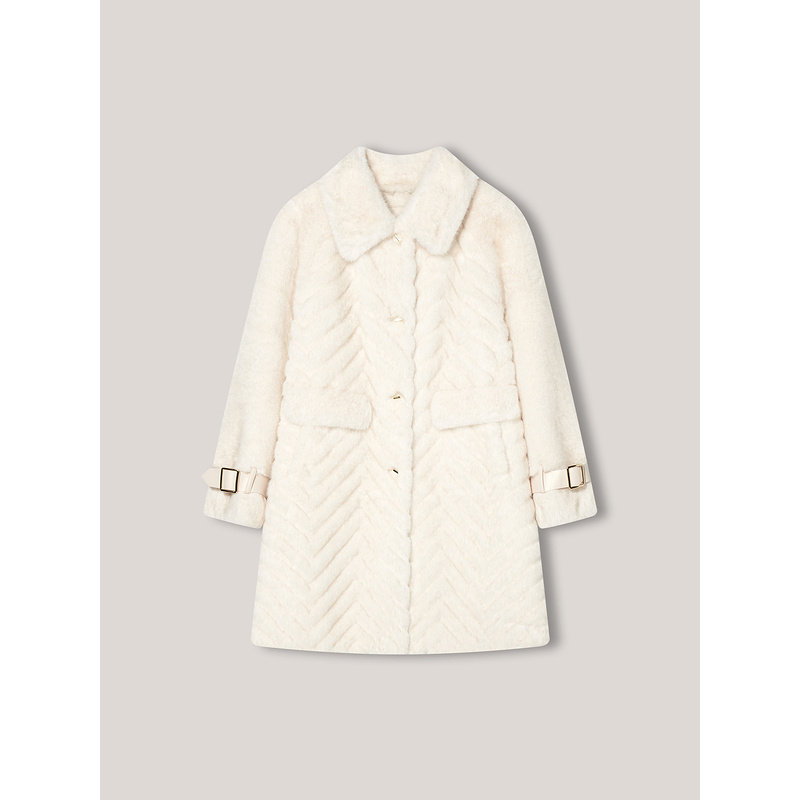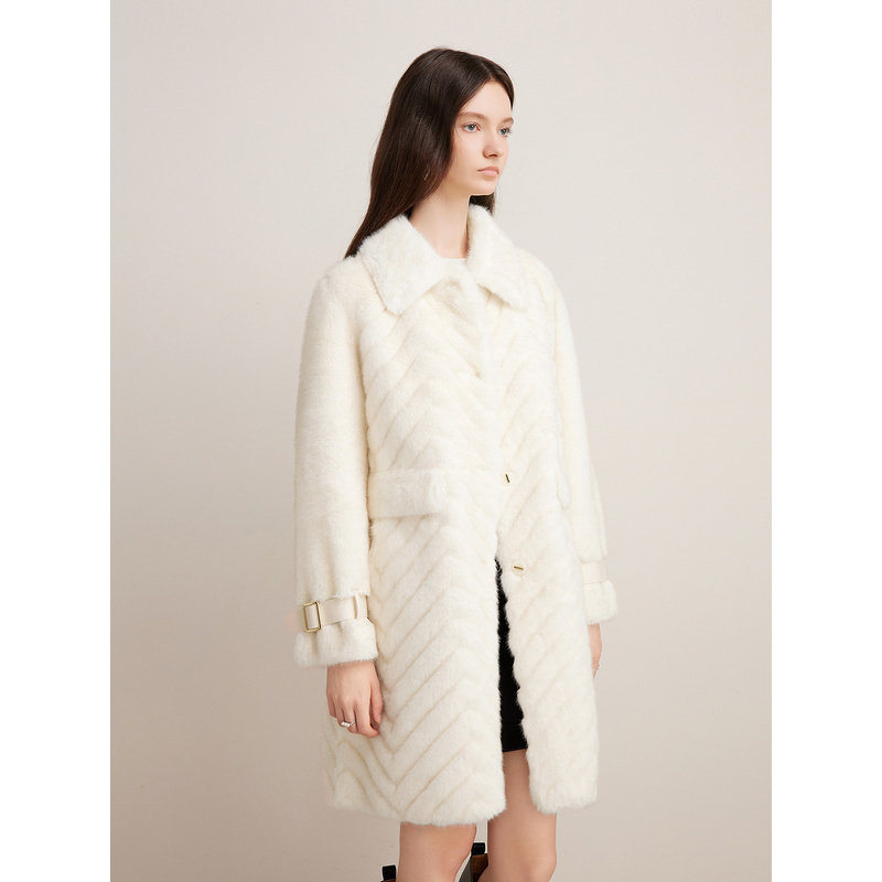 Goodland美地女装冬季法式长款翻领保暖仿皮草大衣外套