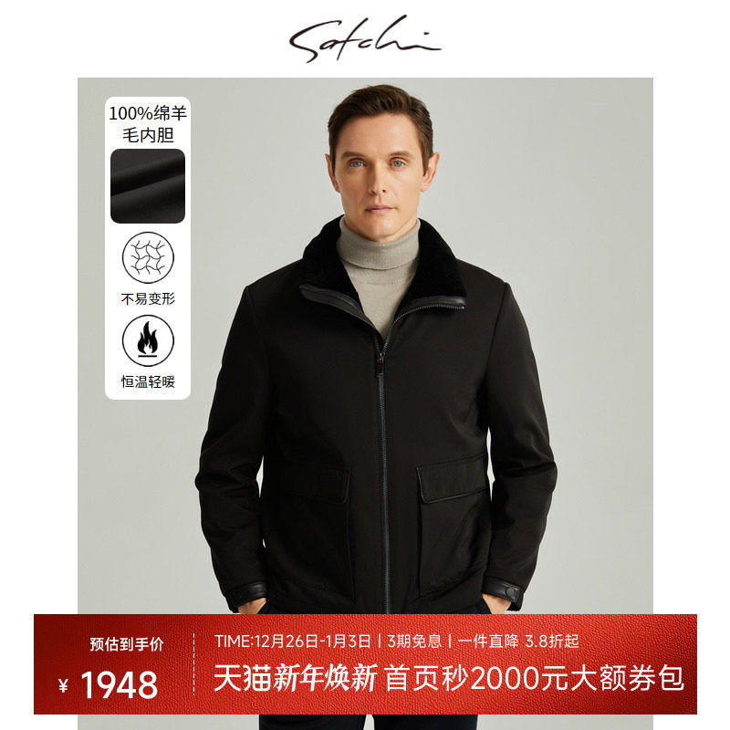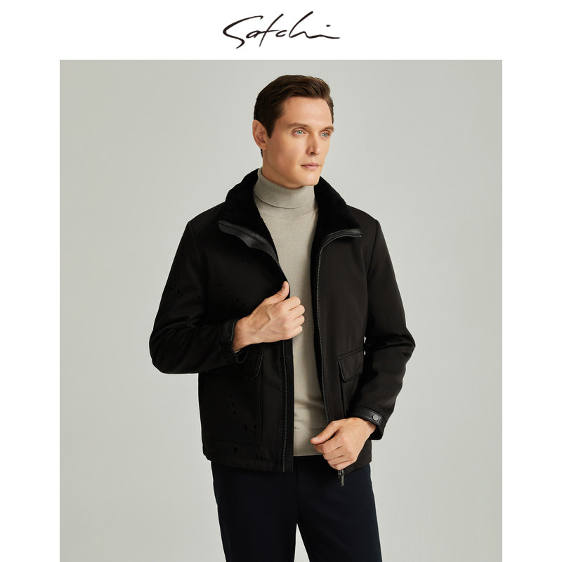 [纯羊毛内胆]沙驰男装男士皮草派克服冬季新款高端商务保暖外套男