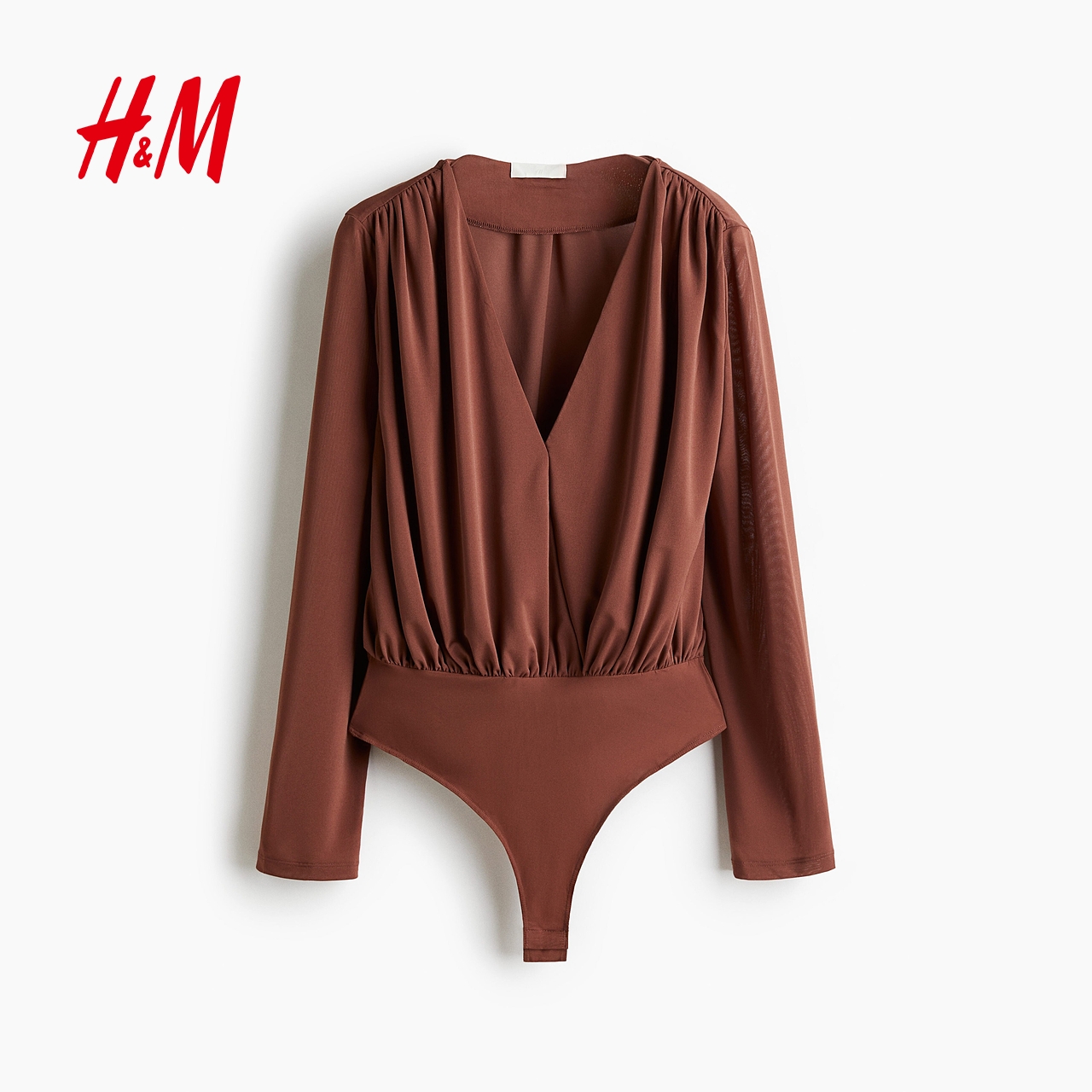 HM2025冬季新款女装垂褶V领丁字裤连体衣1314323