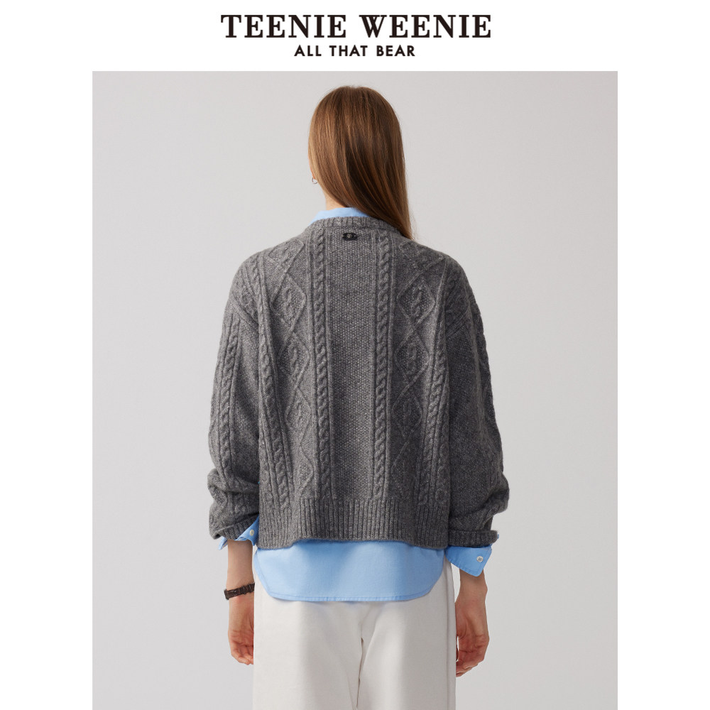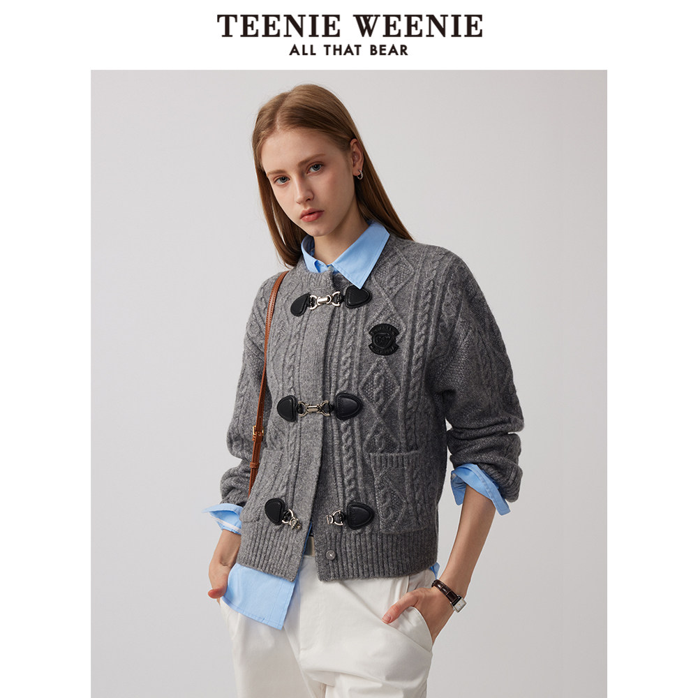 TeenieWeenie小熊奥莱冬装设计感绞花针织开衫毛衣外套时髦
