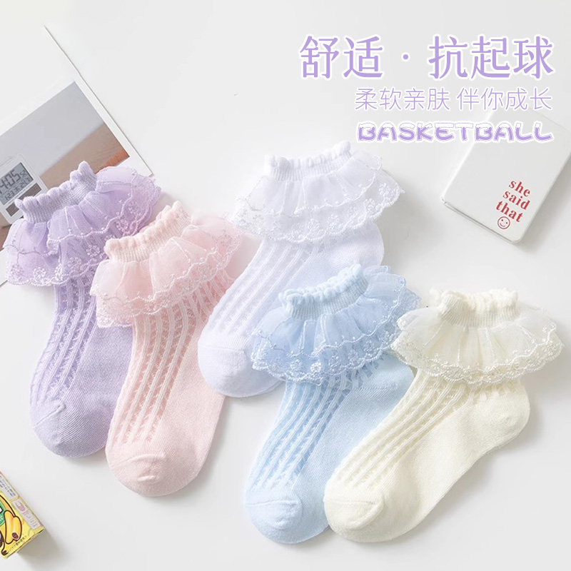 木木屋 夏季女童花边透气薄款蕾丝袜白色舞蹈网眼公主风宝宝袜子