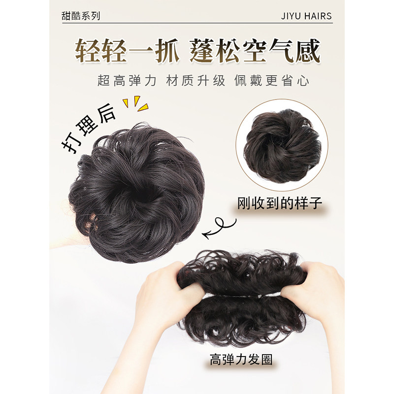 低扎丸子头假发鸡毛头抓夹盘发发包慵懒感造型头饰自然蓬松后脑勺