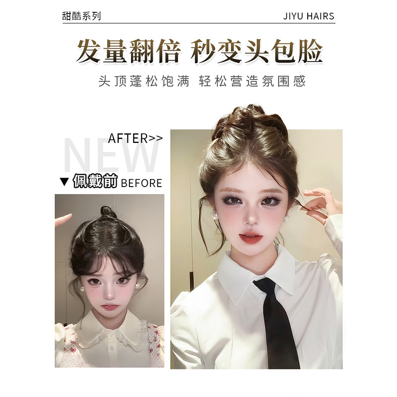 丸子头假发发圈盘发发包仿真发古风花苞头蓬松盘发增发神器假发包
