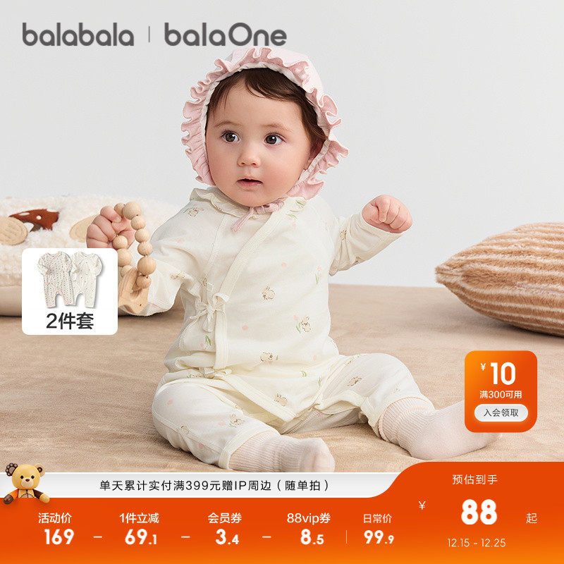 巴拉巴拉婴儿连体衣宝宝睡衣新生儿爬服哈衣2025新款全棉两件装萌