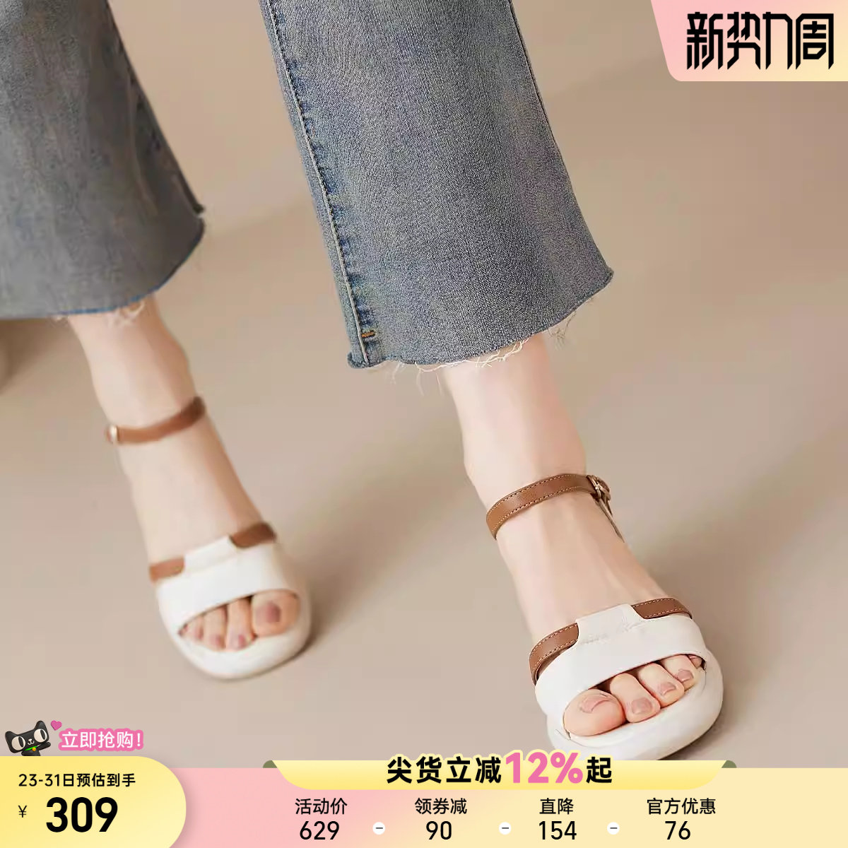 真皮~骄屿凉鞋女绝美外穿2025新款夏高级感配裙子厚底夹脚罗马鞋