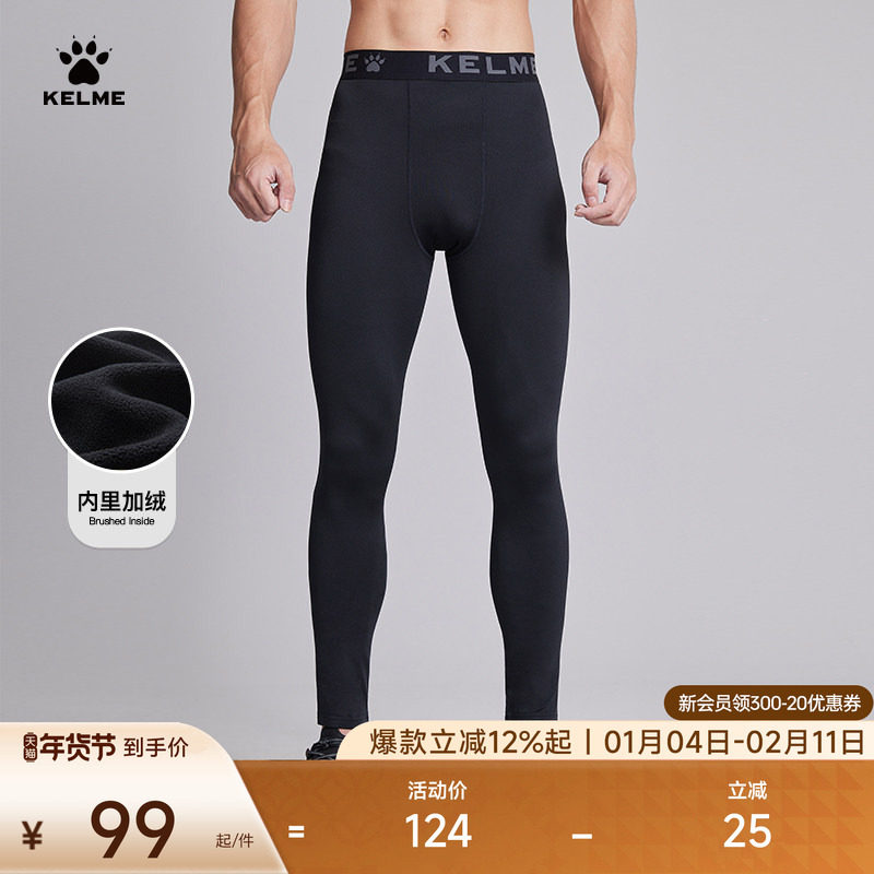 KELME卡尔美加绒紧身裤运动足球训练健身裤男篮球打底跑步压缩裤