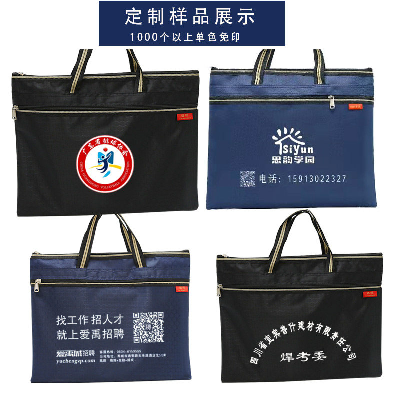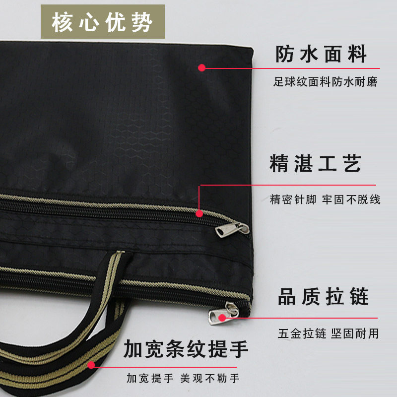 文件袋定制手提包多层拉链袋足球纹资料袋收纳包公文袋培训会议袋子牛津帆布男公文包防水电脑包宣传logo印刷
