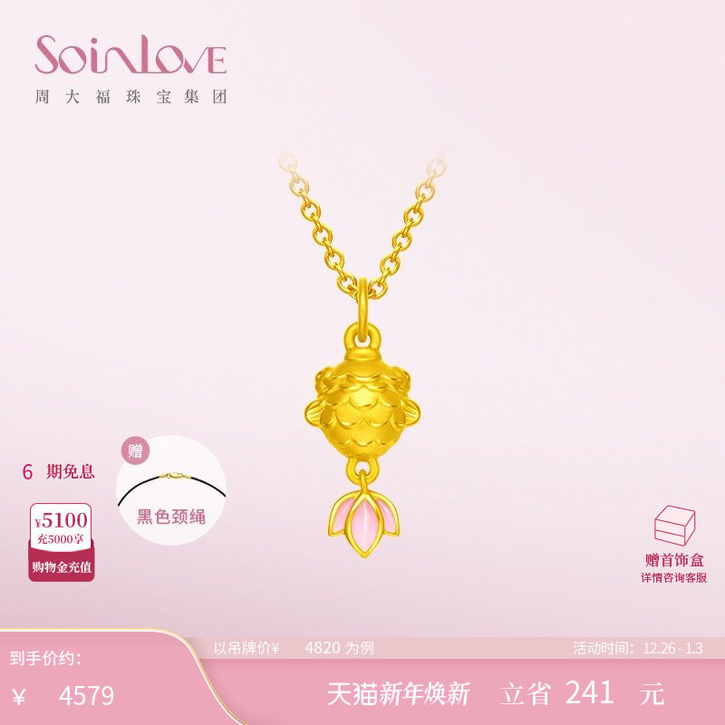 周大福SOINLOVE蜜粉金十里红妆锦鲤黄金转运珠吊坠生日礼物