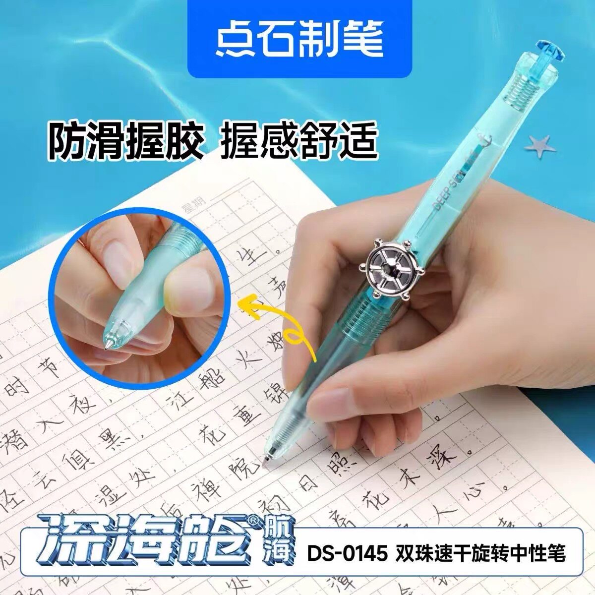 点石深海舱航海双珠速干按动中性笔潜艇旋转出芯0.5静音笔DS-0145