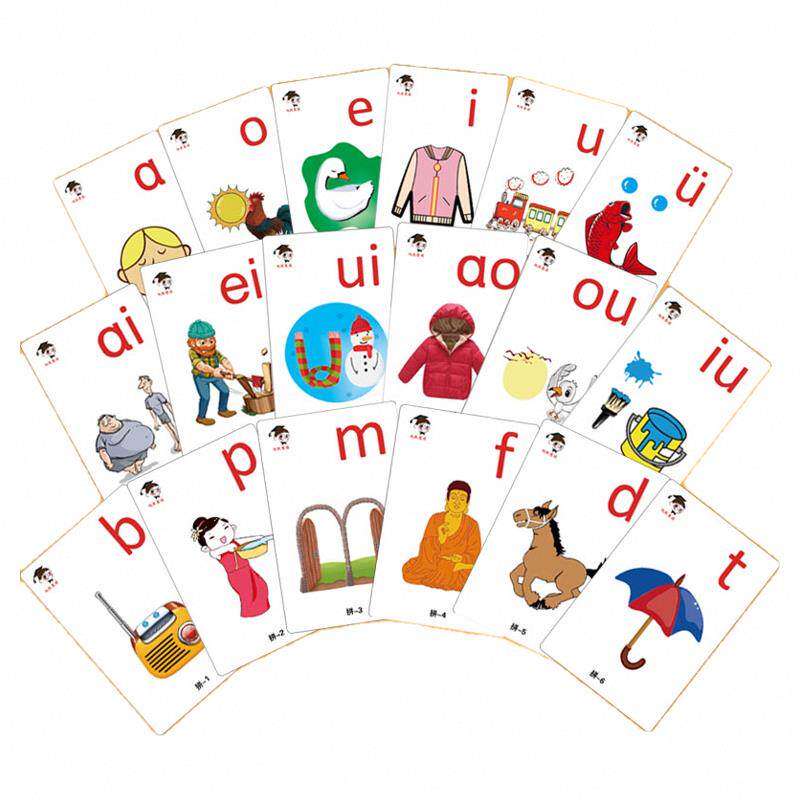 有图扑克牌游戏卡拼音卡片幼儿园幼小衔接aoe字母表学习自律神器
