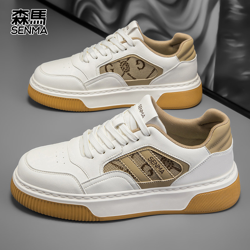 森马 2025年春季新款真皮板鞋百搭休闲鞋高端头层牛皮运动鞋