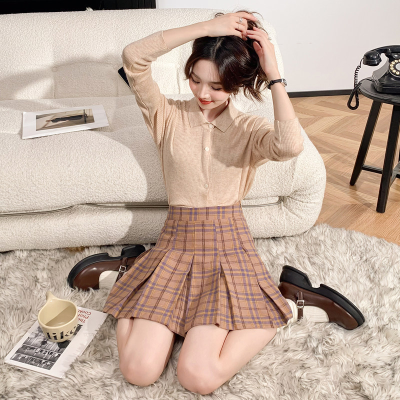 唐狮女毛呢格子美拉德穿搭百褶裙秋冬新款半身裙学院风短裙