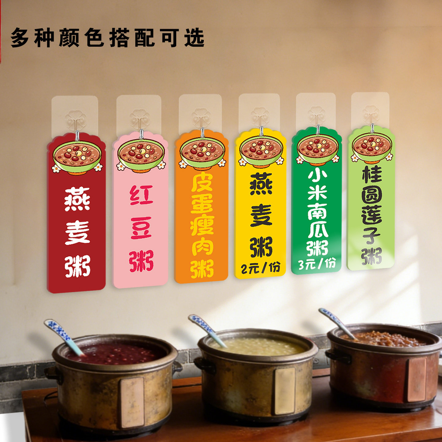 粥类价格挂牌亚克力牌定制早餐店粥饭店卡通图案餐饮提示牌