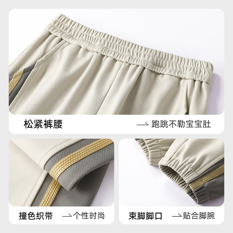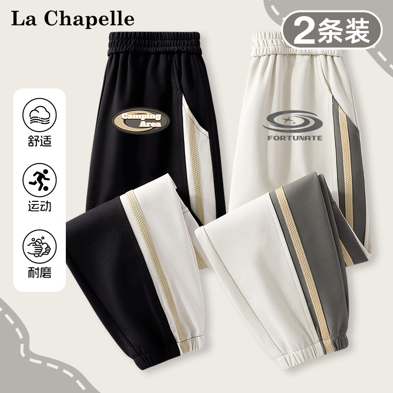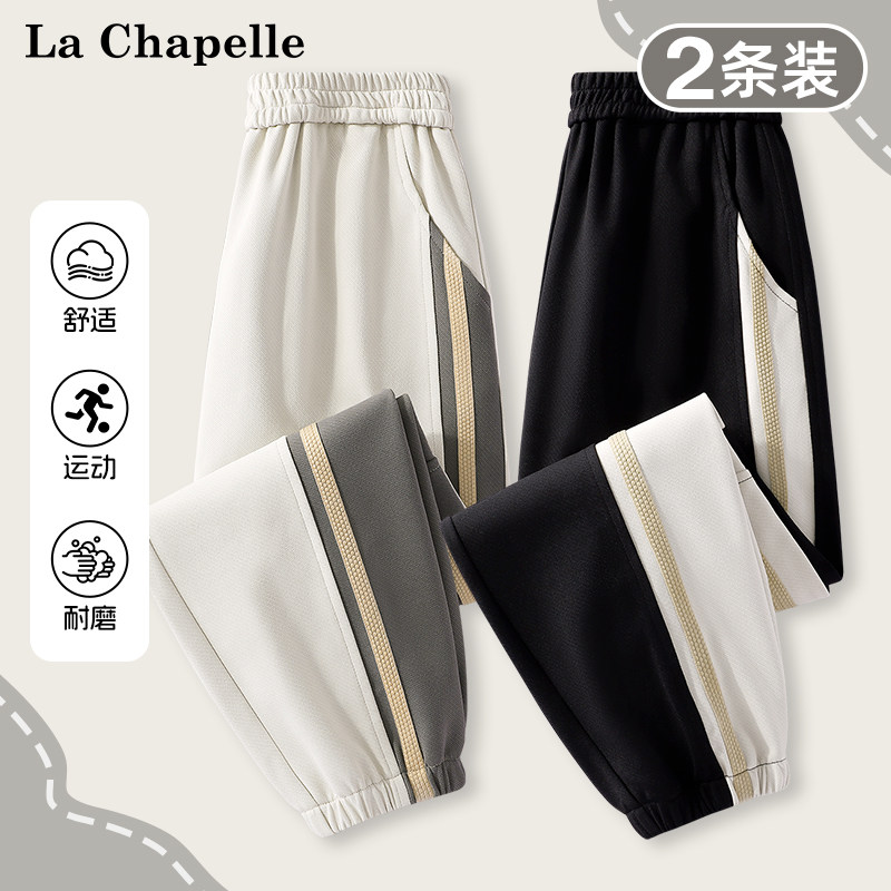 拉夏贝尔男童裤子春秋款儿童秋季运动束脚裤2025大童宽松休闲长裤