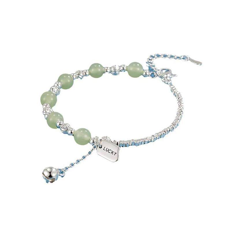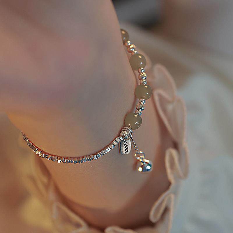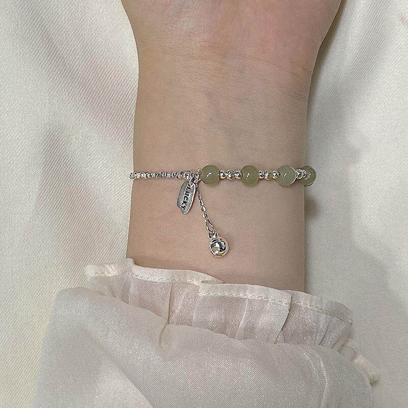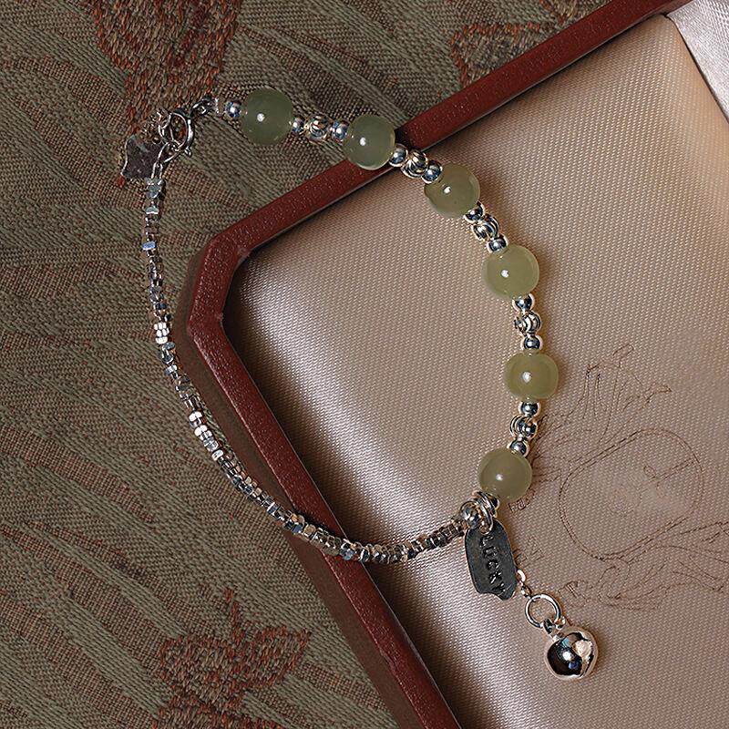 【幂琳】新国风925纯D银碎银子手錬天然和田玉石幸运手中式送闺蜜